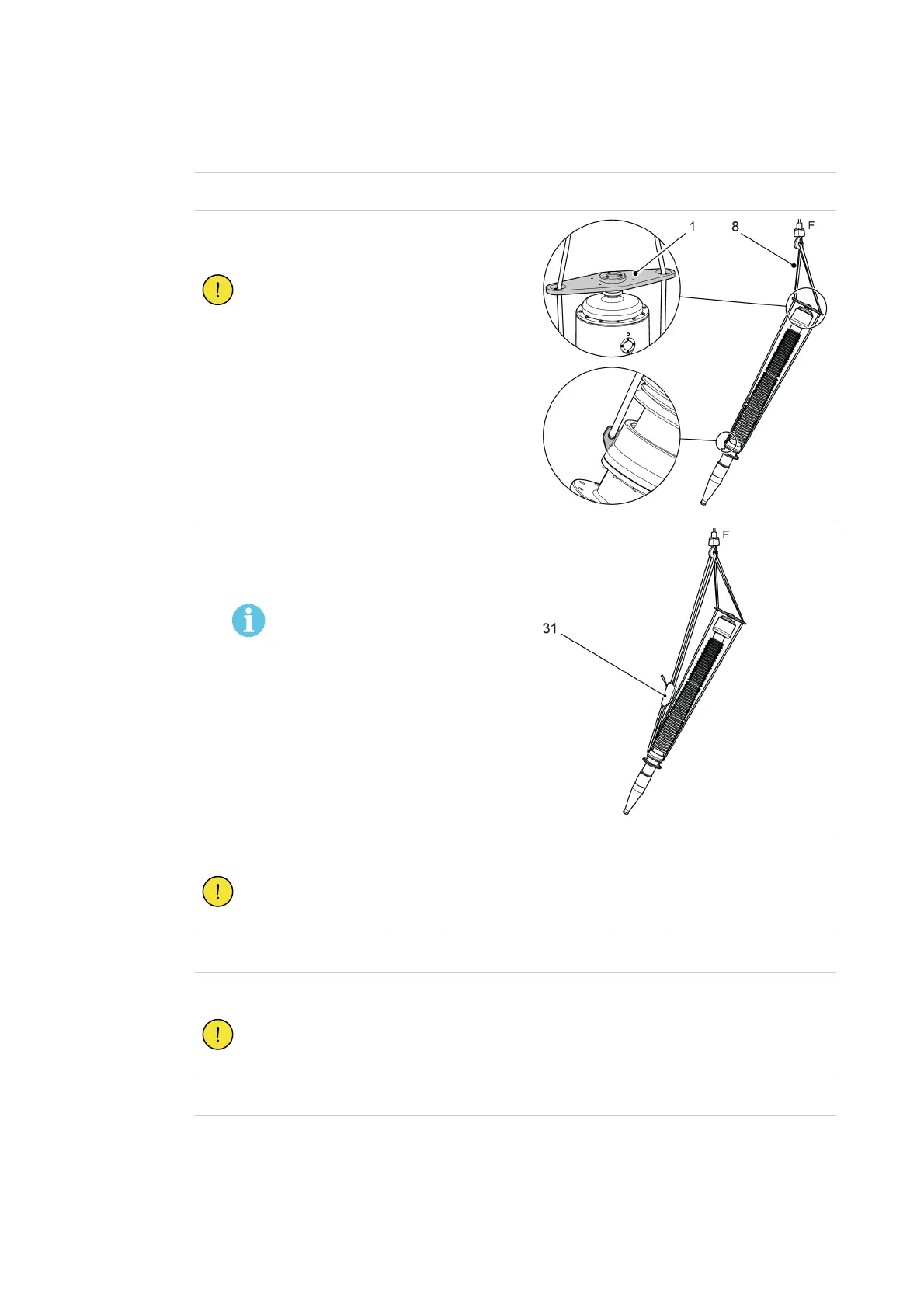 Adjust the shackle (31) until the bushing flange has the same angle as the transformer flange.