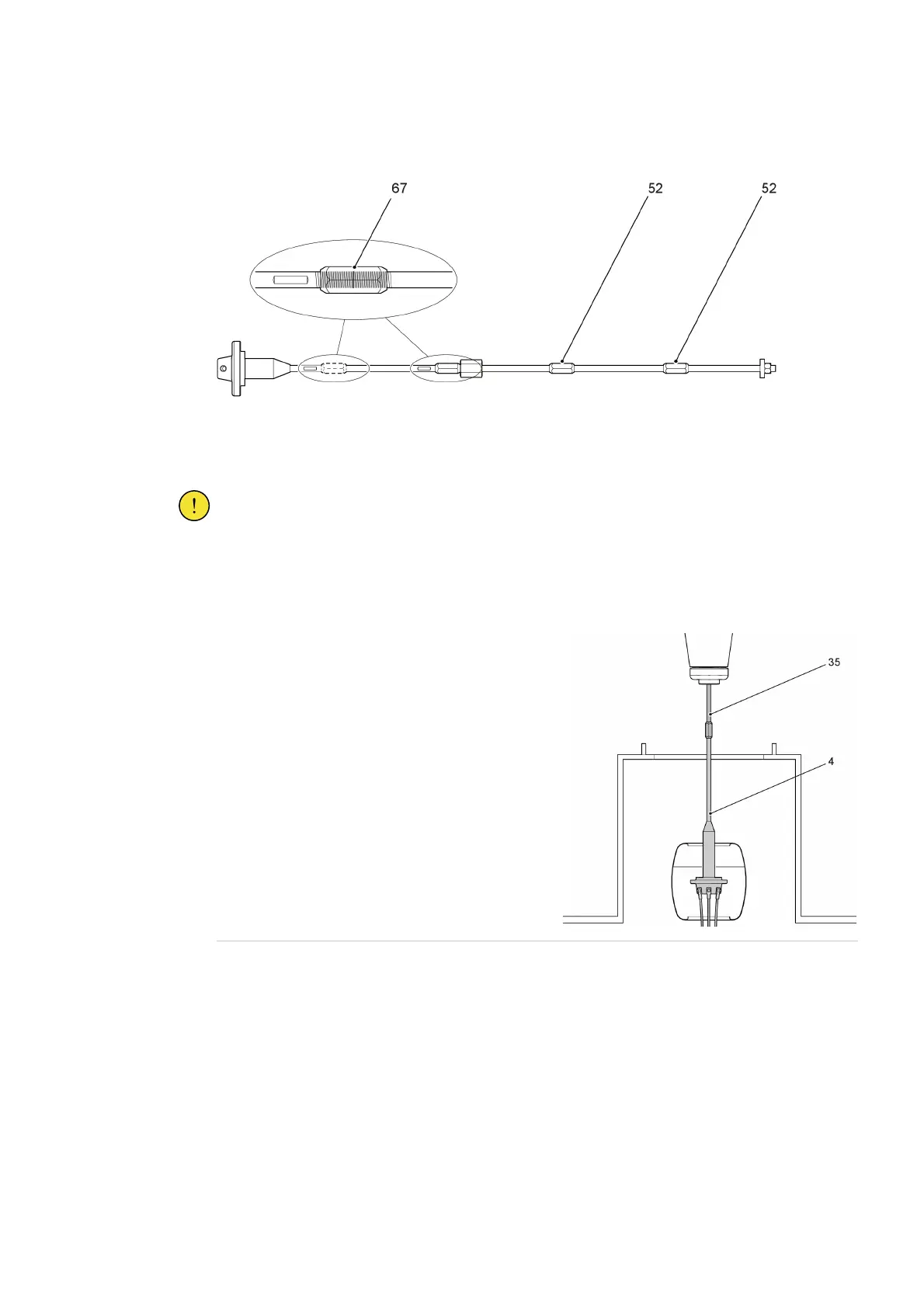 It is important to install the draw rod correctly, thus the ends of the draw rod parts must make contact at (67).