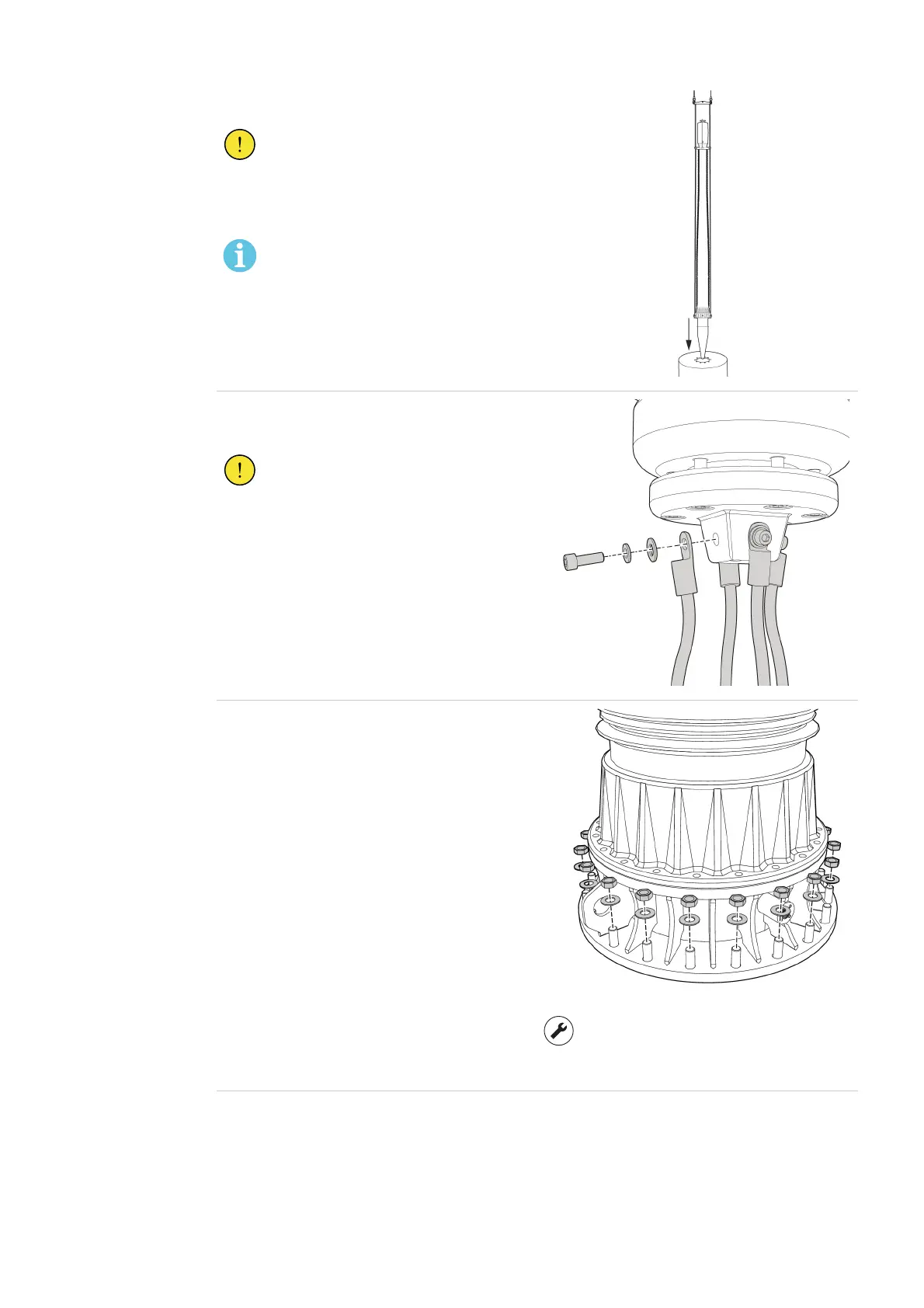 Install the washers and nuts. Tighten the nuts in a