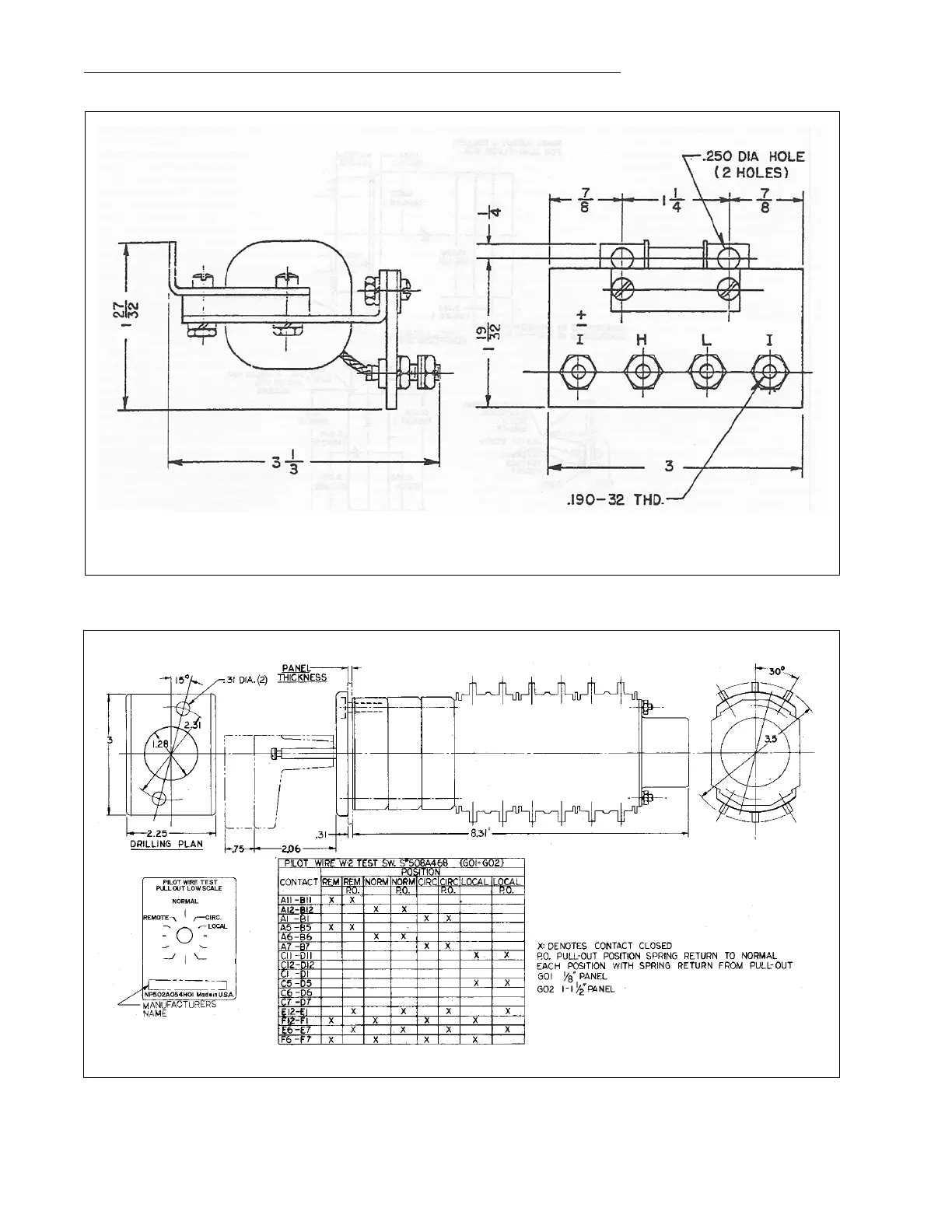 Outline and Drilling Plan of the Type W-2 Test Switch.