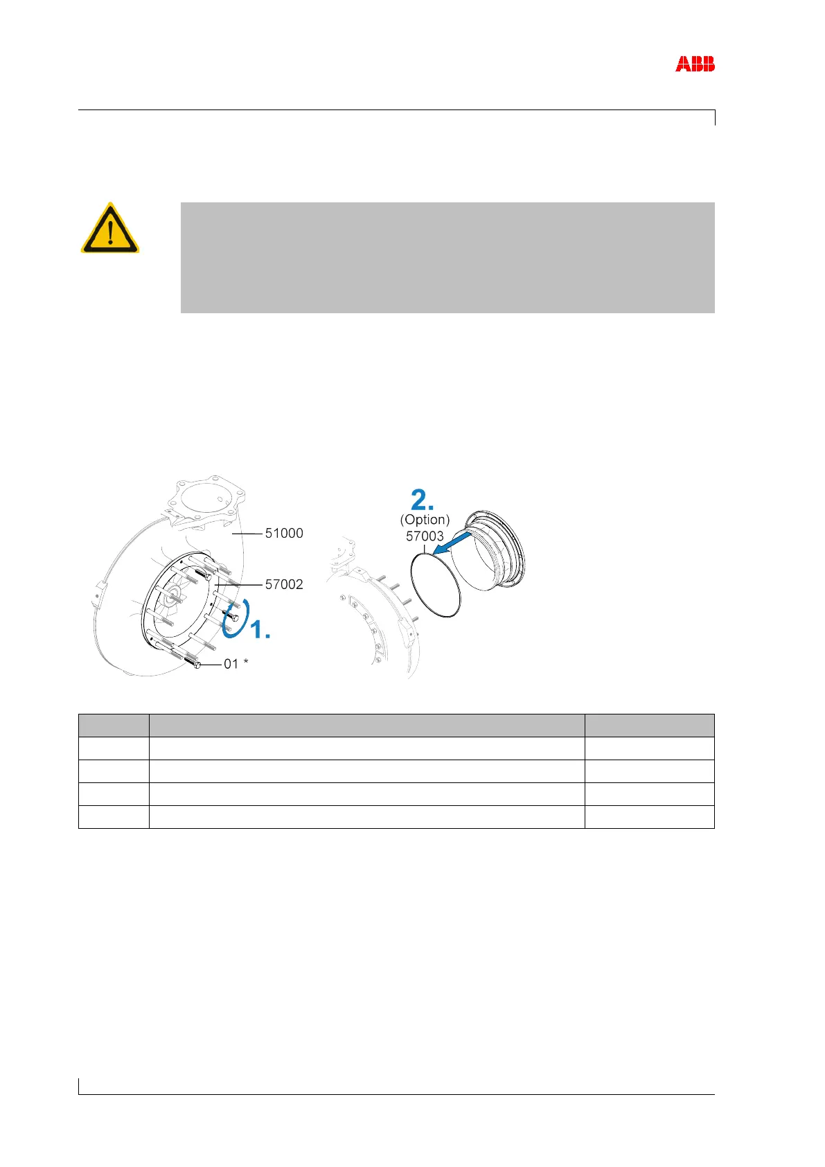 1. Press off and remove the gas outlet flange (57002) with screws (01) according to the table.