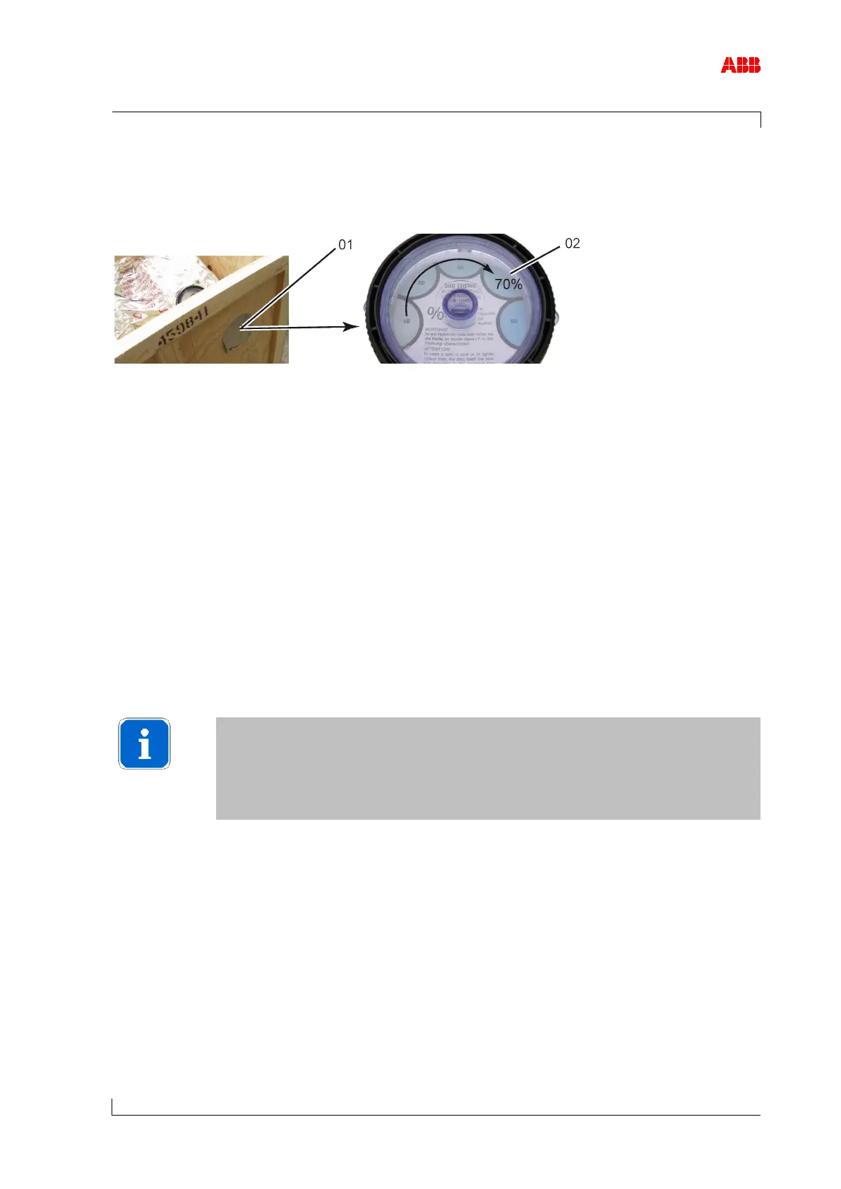 Check the hygrometer (02) in the sight-glass. There is an opening (01) in the wooden crate