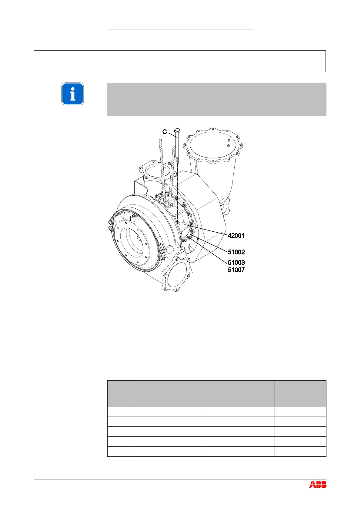 Fasten the bearing casing (42001) using the fixing screws (C).