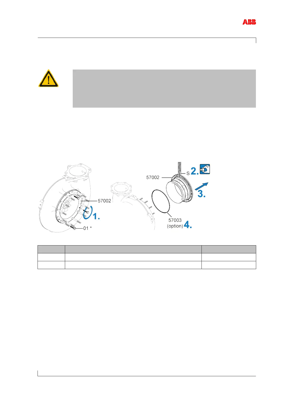 1. Evenly press off and remove the gas outlet flange (57002) with screws (01) according to