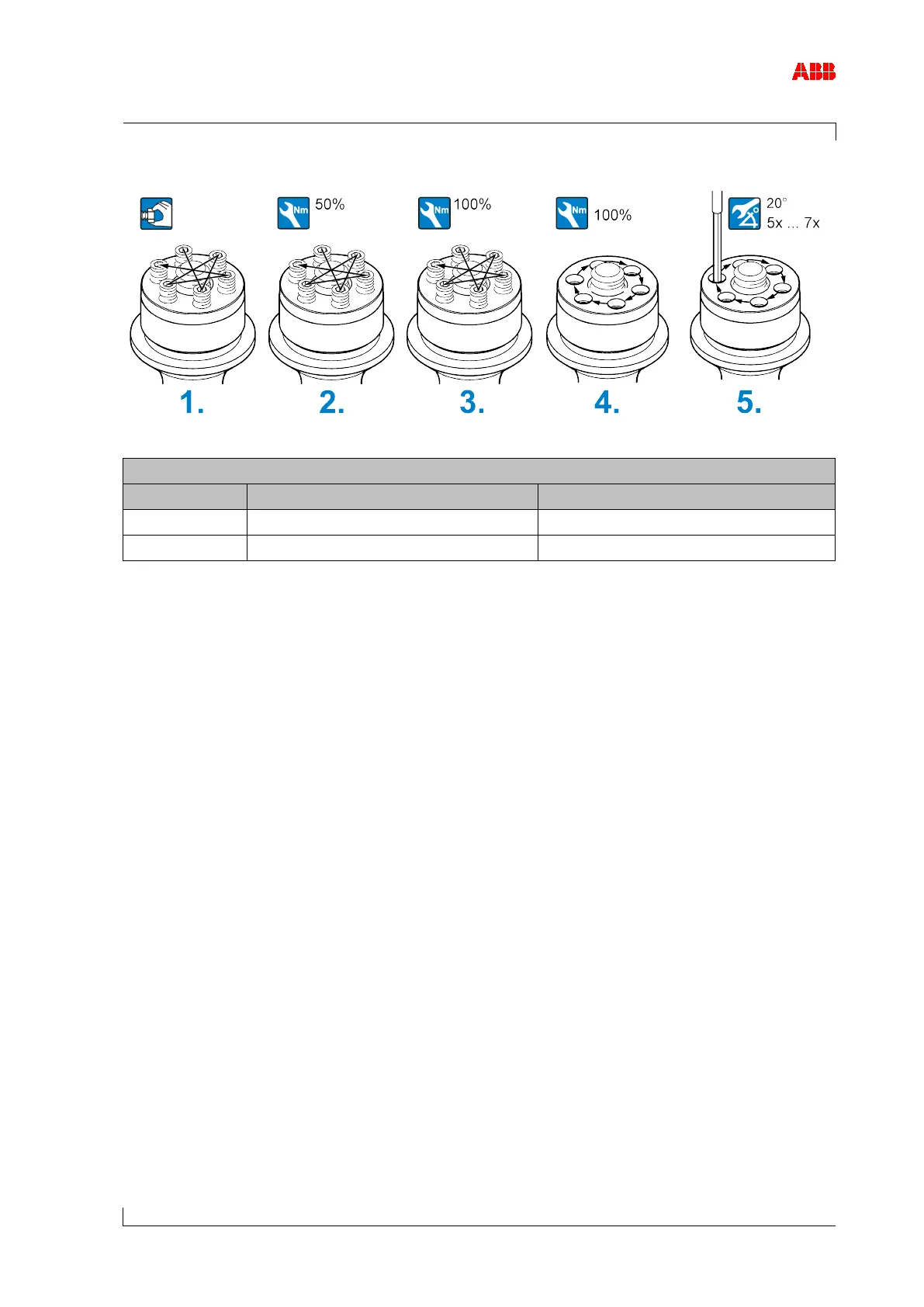 5. Tighten pressure screws to 100 % in 5 … 7 rounds until the required residual tightening