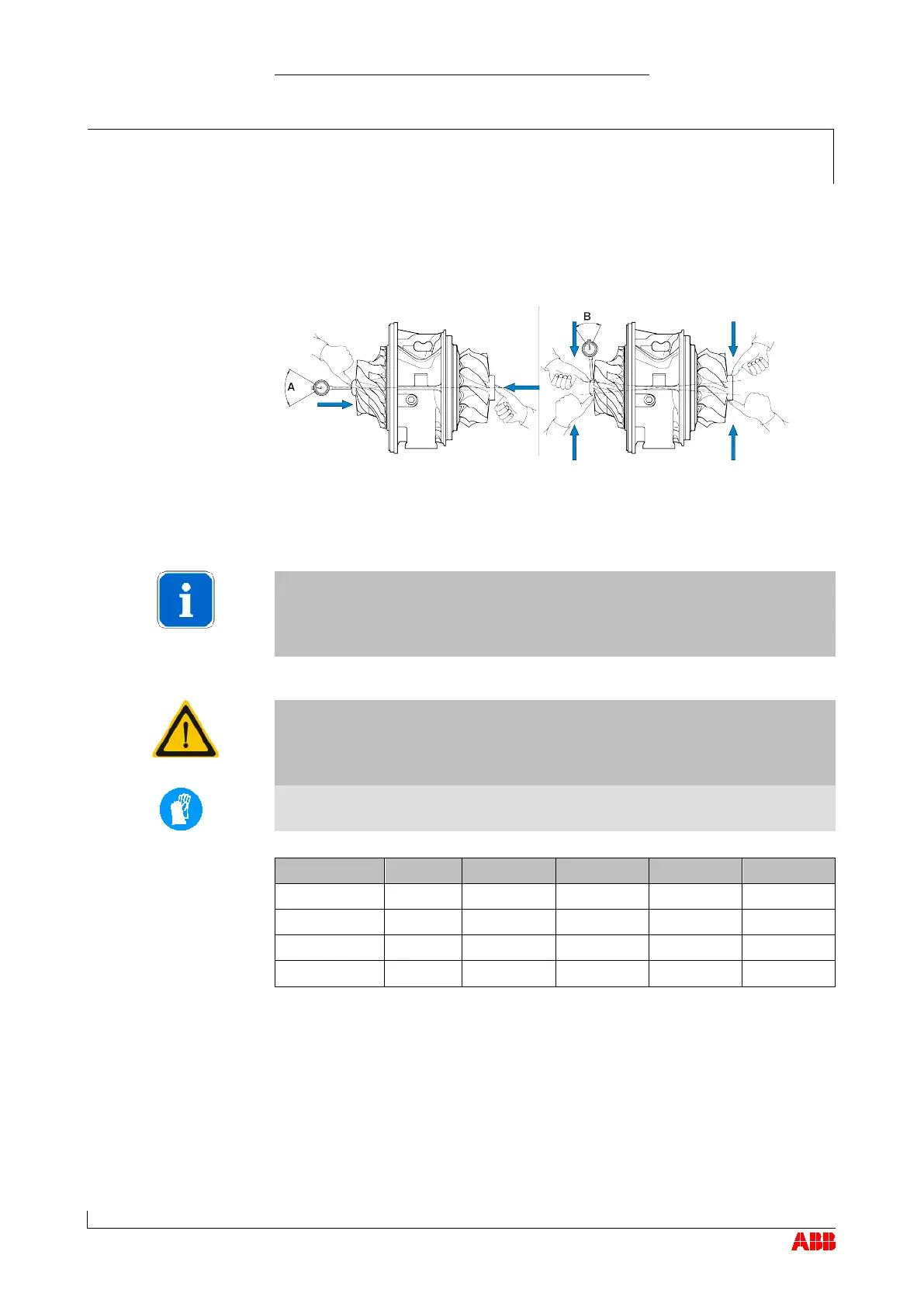 In order to correctly measure the axial clearance A, the turbine must be
