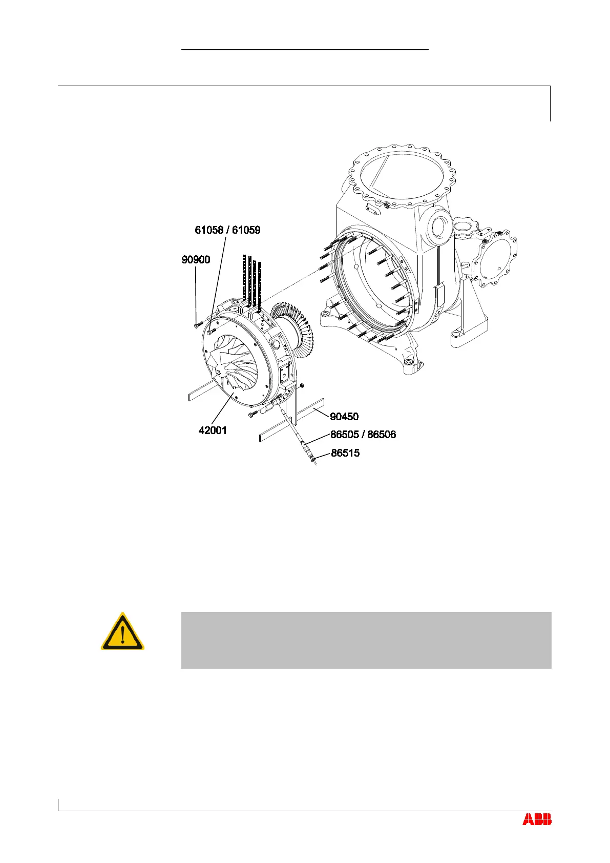 Fasten separate lifting gear to each of the two ribs on the bearing cas-