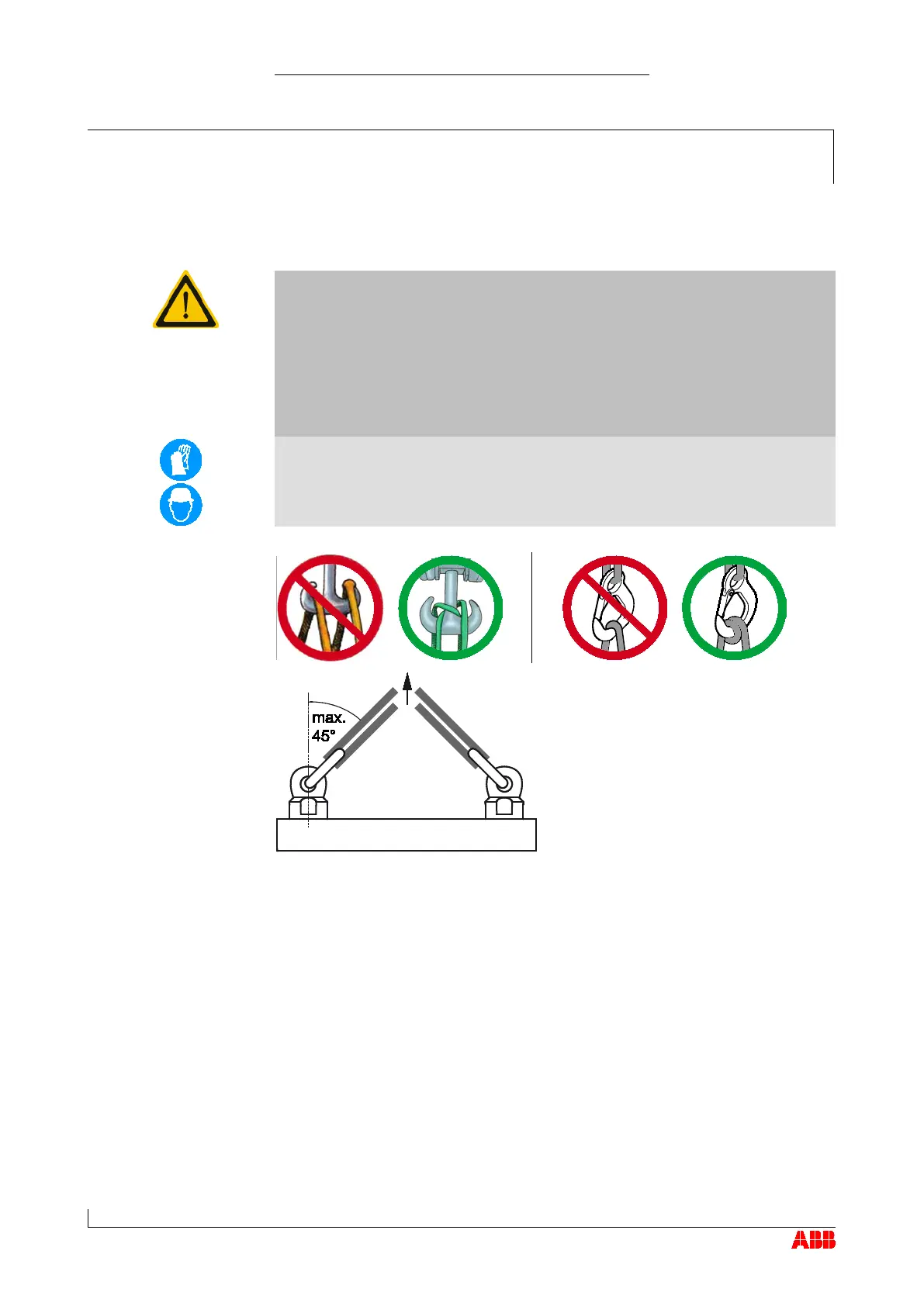 In the case of two or more suspension points, the slinging angle must not