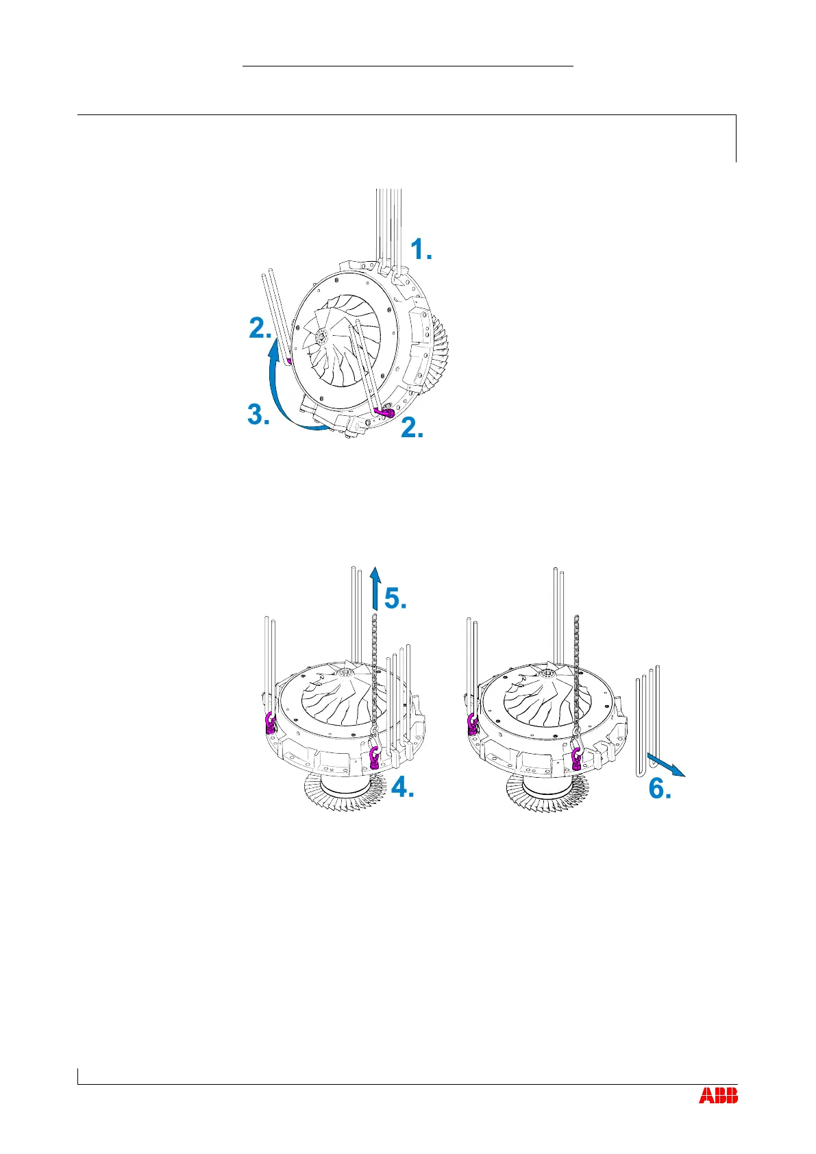 2. Secure two lifting loops with swivel lifting eyes in the lower push-off