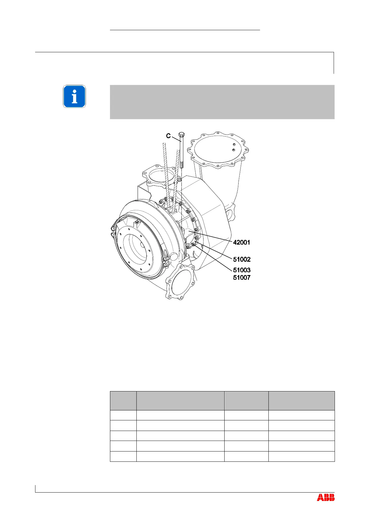 Fasten the bearing casing (42001) using the fixing screws (C).