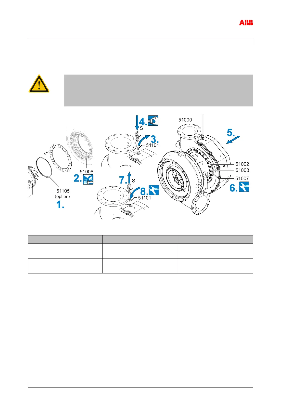 4. Fit swivel lifting eye (S) to the turbine casing (51000). Secure lifting gear to the swivel lift-