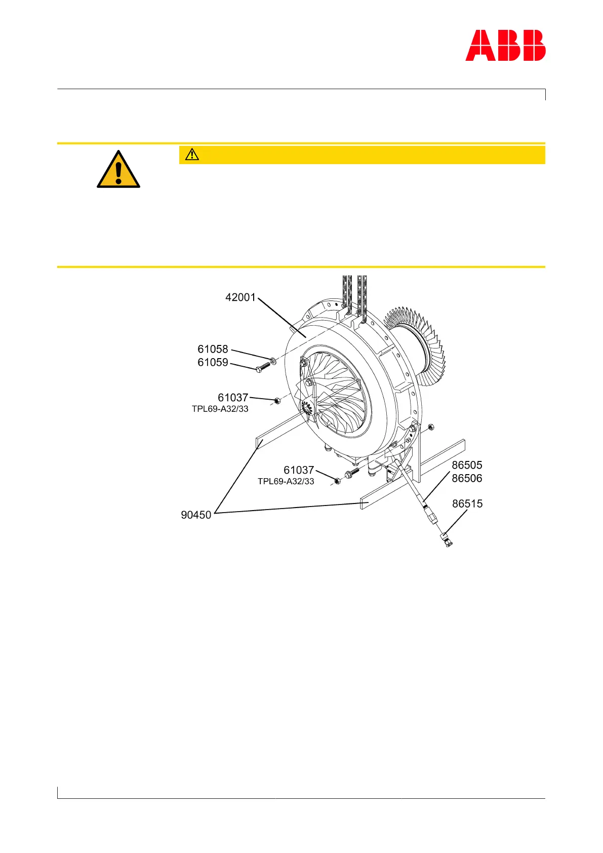 u Secure separate lifting gear to each of two ribs on bearing casing