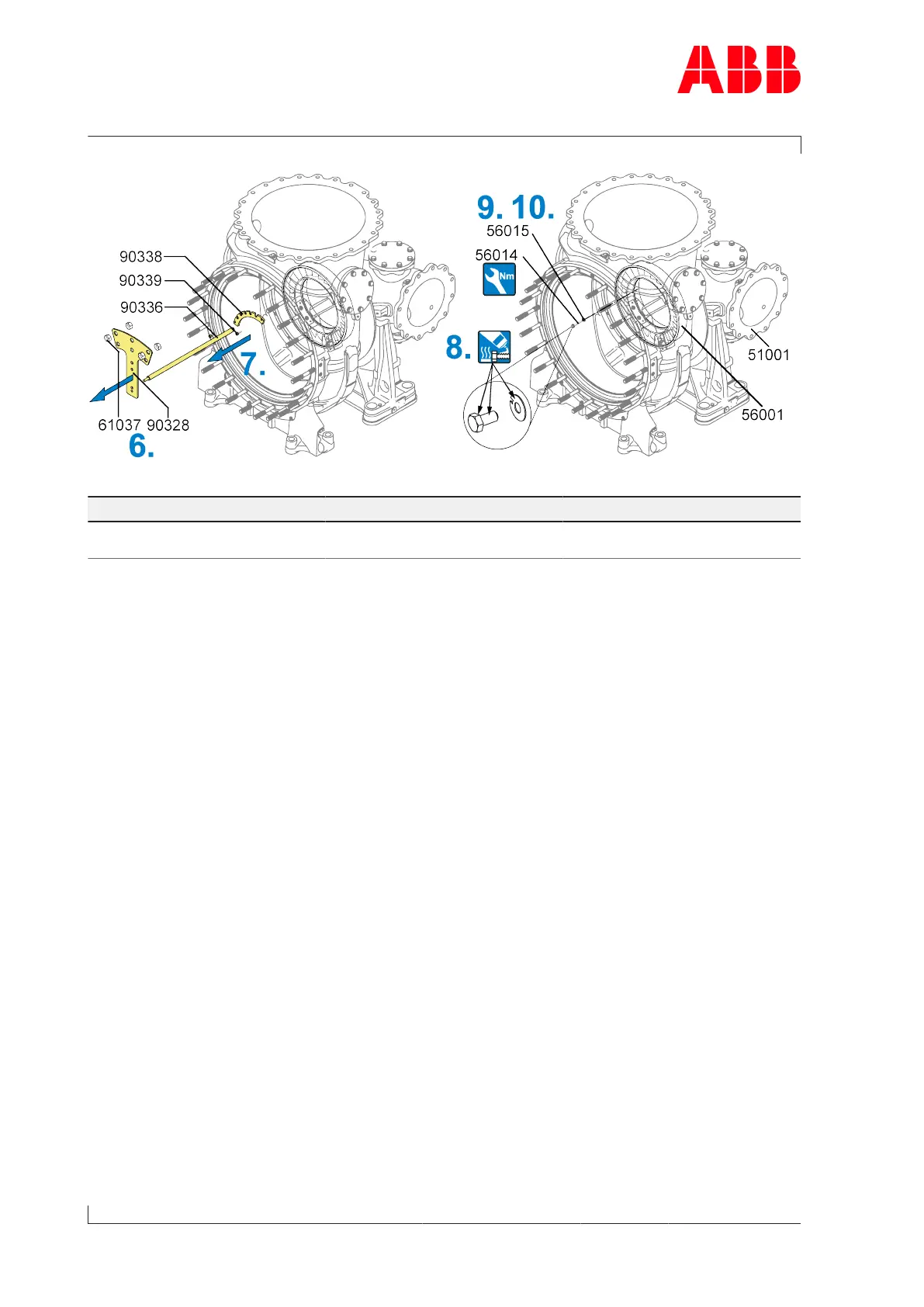 9. Fit the nozzle ring (56001) on the gas inlet casing (51001) using the screws (56014) and