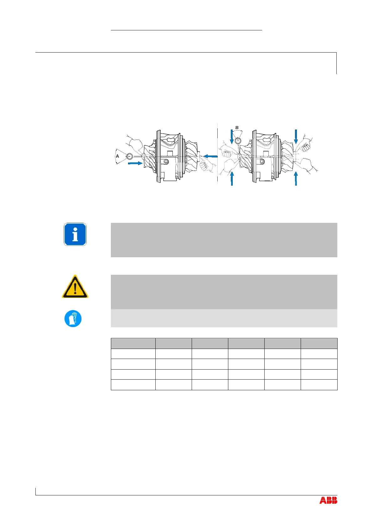 In order to correctly measure the axial clearance A, the turbine must be