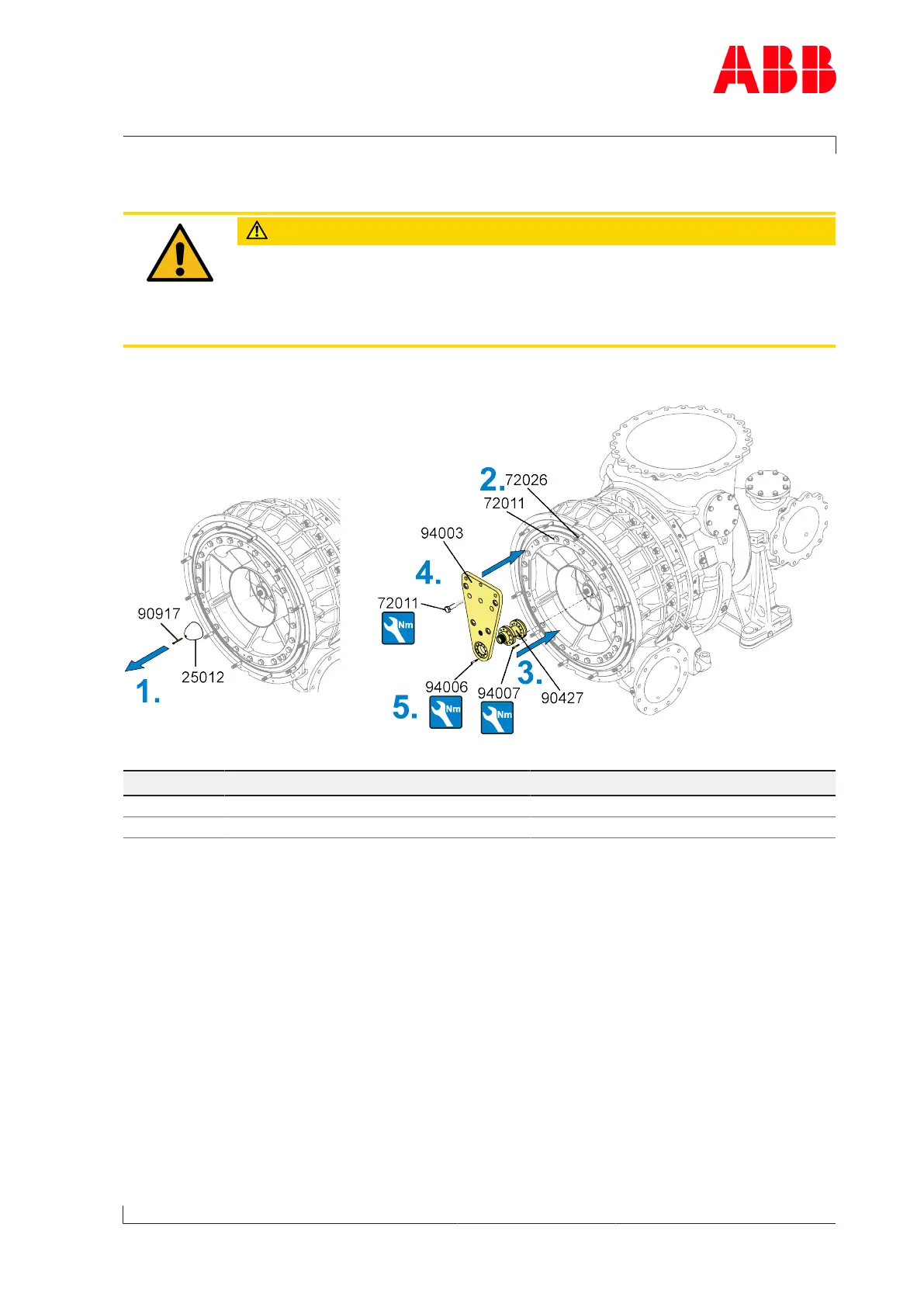 4. Position assembly/disassembly device (94003) with screws (72011) and lifting spigot