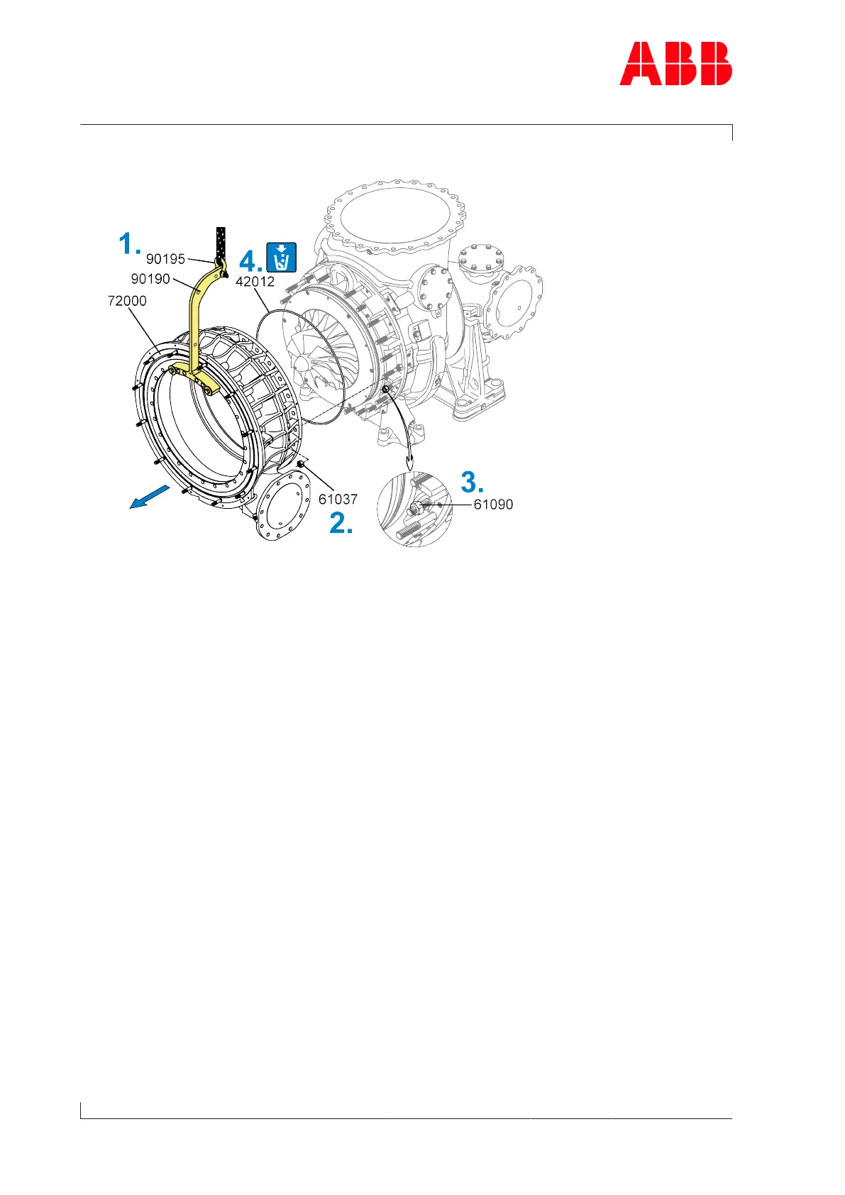 1. Using shackle (90195) and lifting gear, fasten lifting device (90190) to compressor casing