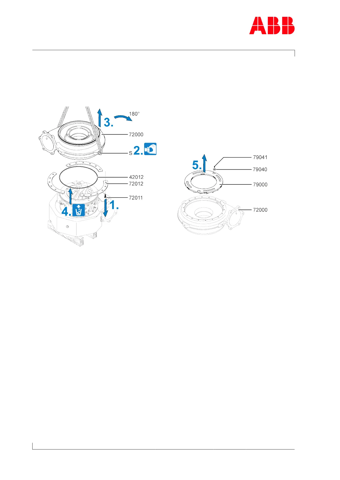 5. Loosen screws (79041) and remove from the compressor casing (72000) with fixing discs