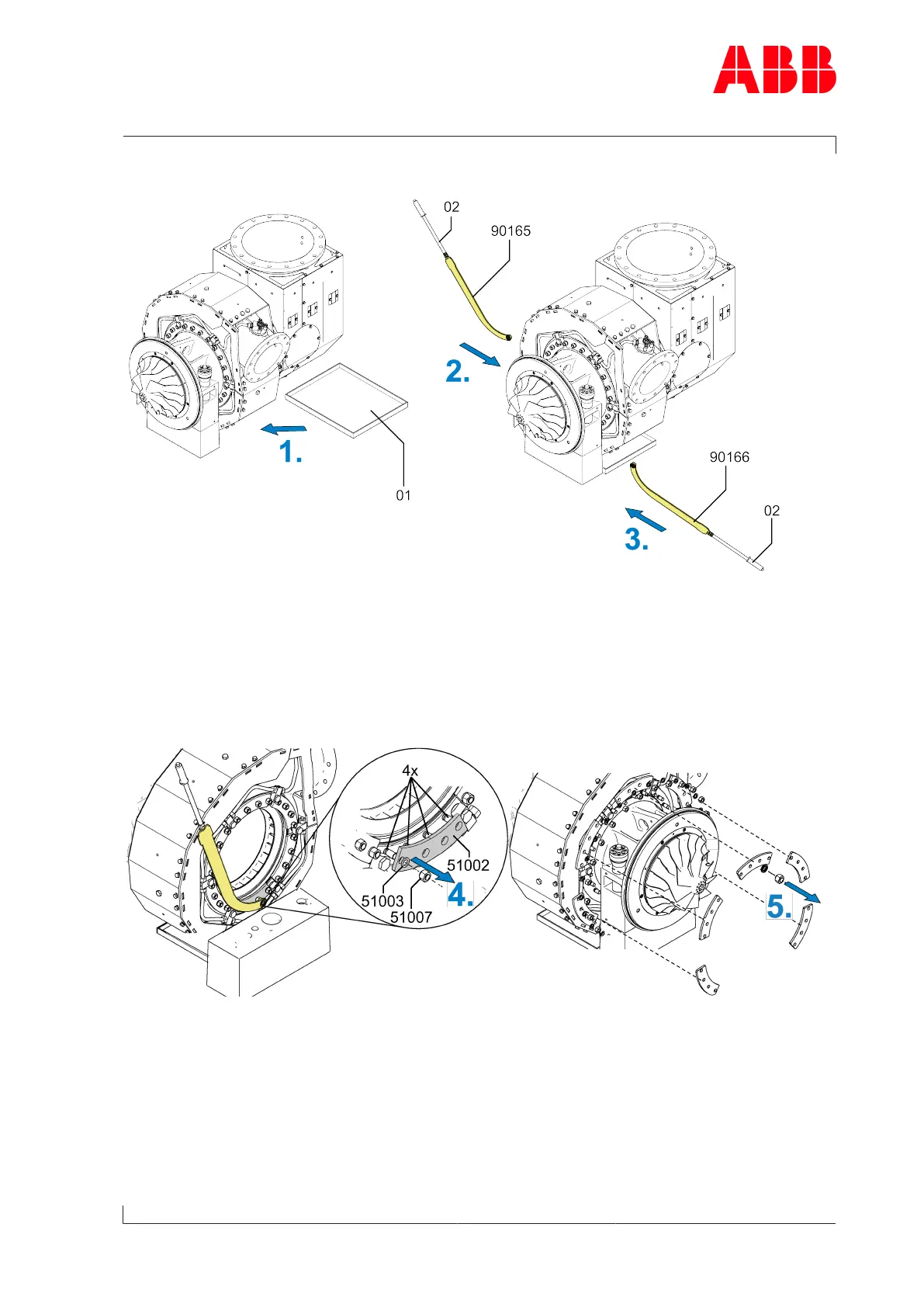 ner (02). Remove washers (51003) and fastening strips (51002).