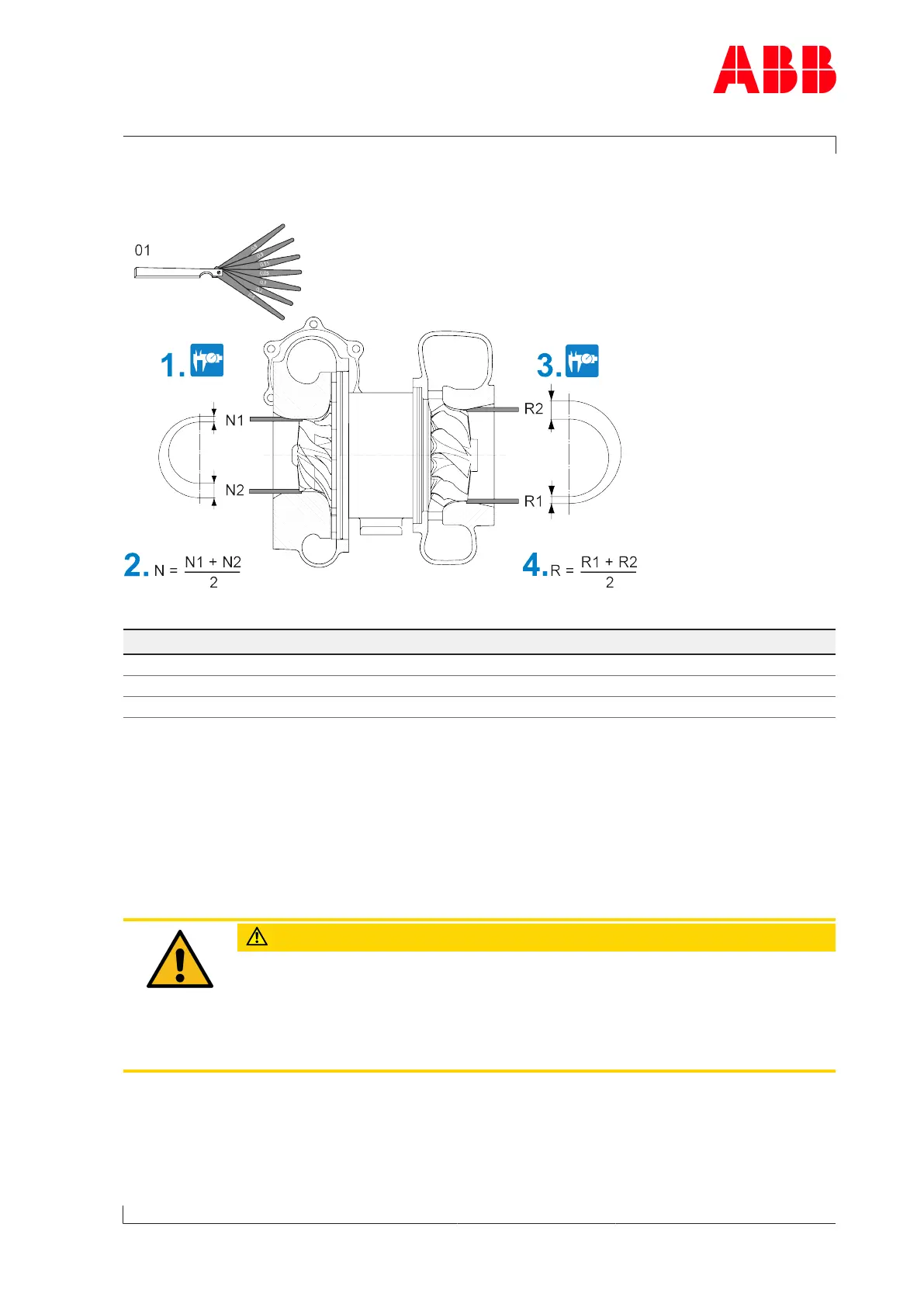 1. Push the feeler gauges(01) into the gap such that there is no clearance. The upper direc-