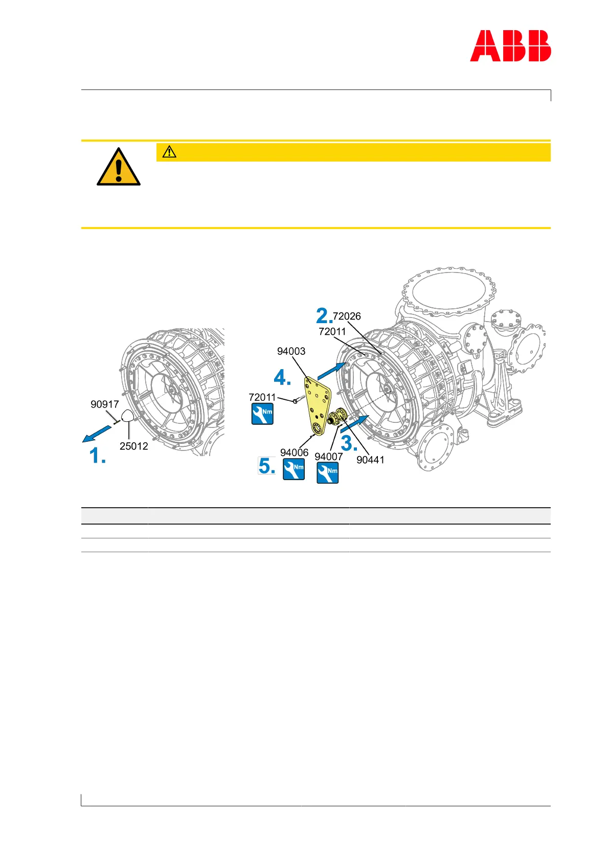 4. Position assembly/disassembly device (94003) with bolts (72011) and lifting spigot