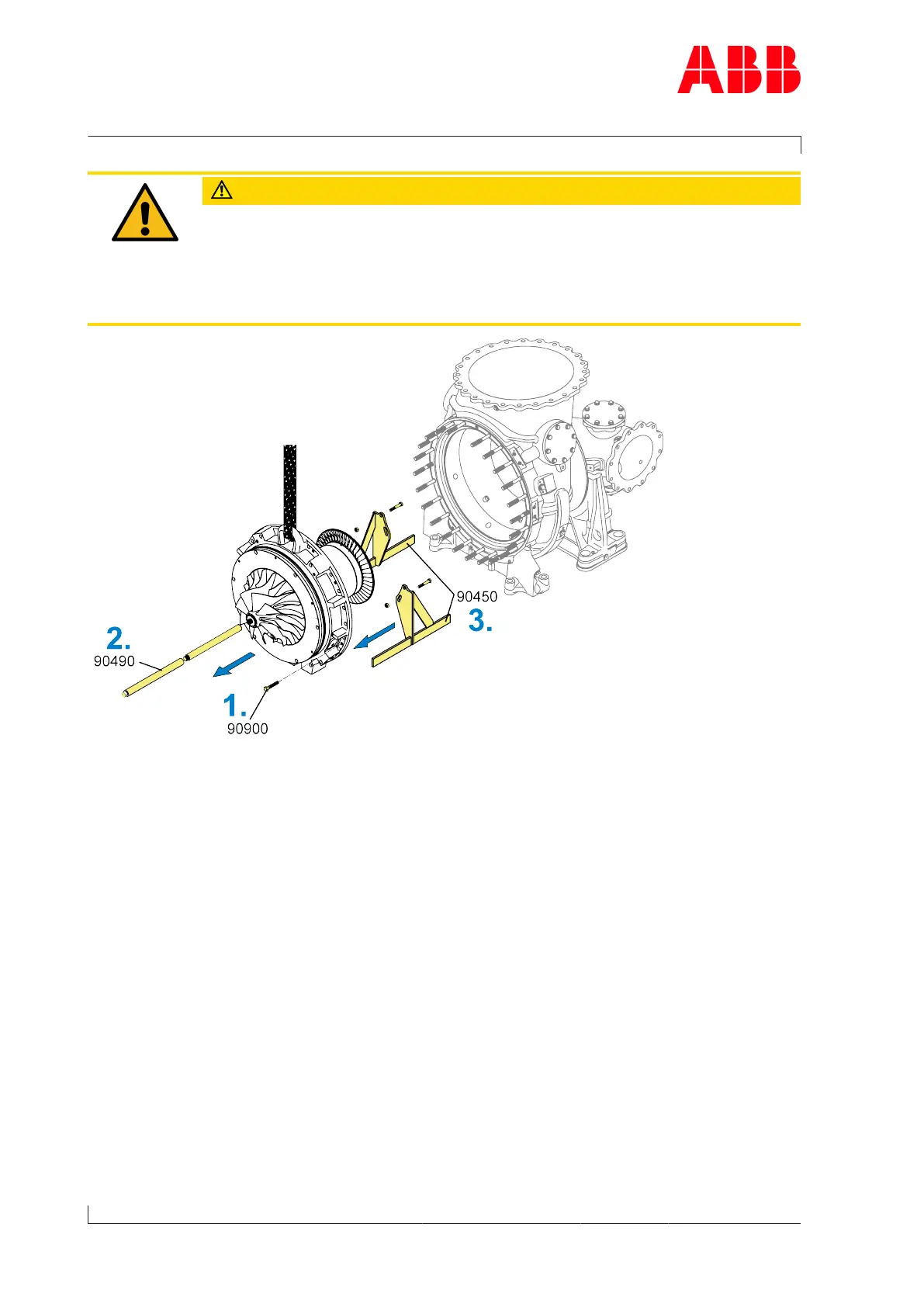 1. Evenly press off cartridge group by screwing three press-off screws (90900) into the
