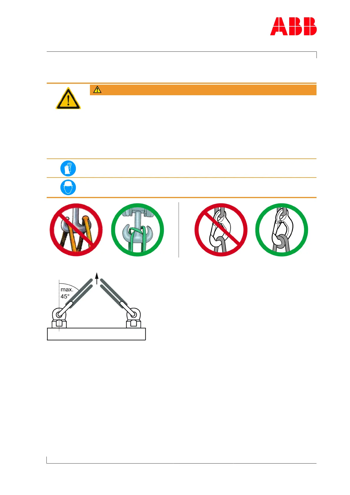 If there are two or more suspension points, the attachment angle of 45° must not be ex-