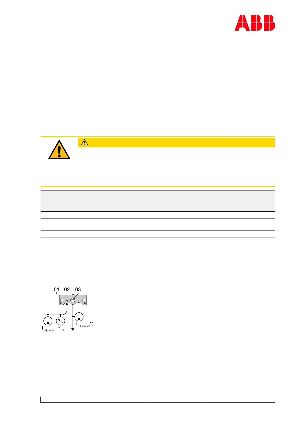 For monitoring the lubricating oil pressure, ABB Turbo Systems recommends installing a "P"