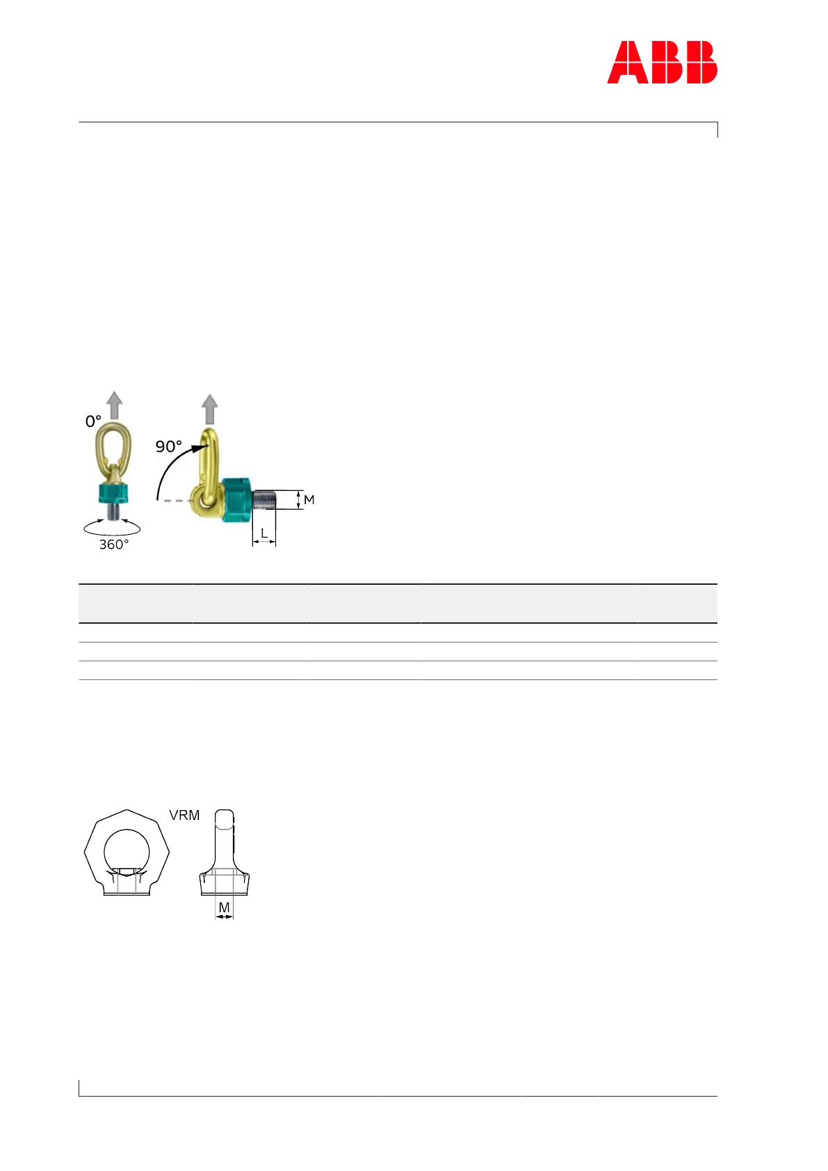 Swivel lifting eyes are required for the safe lifting of loads, which are not supplied by ABB.