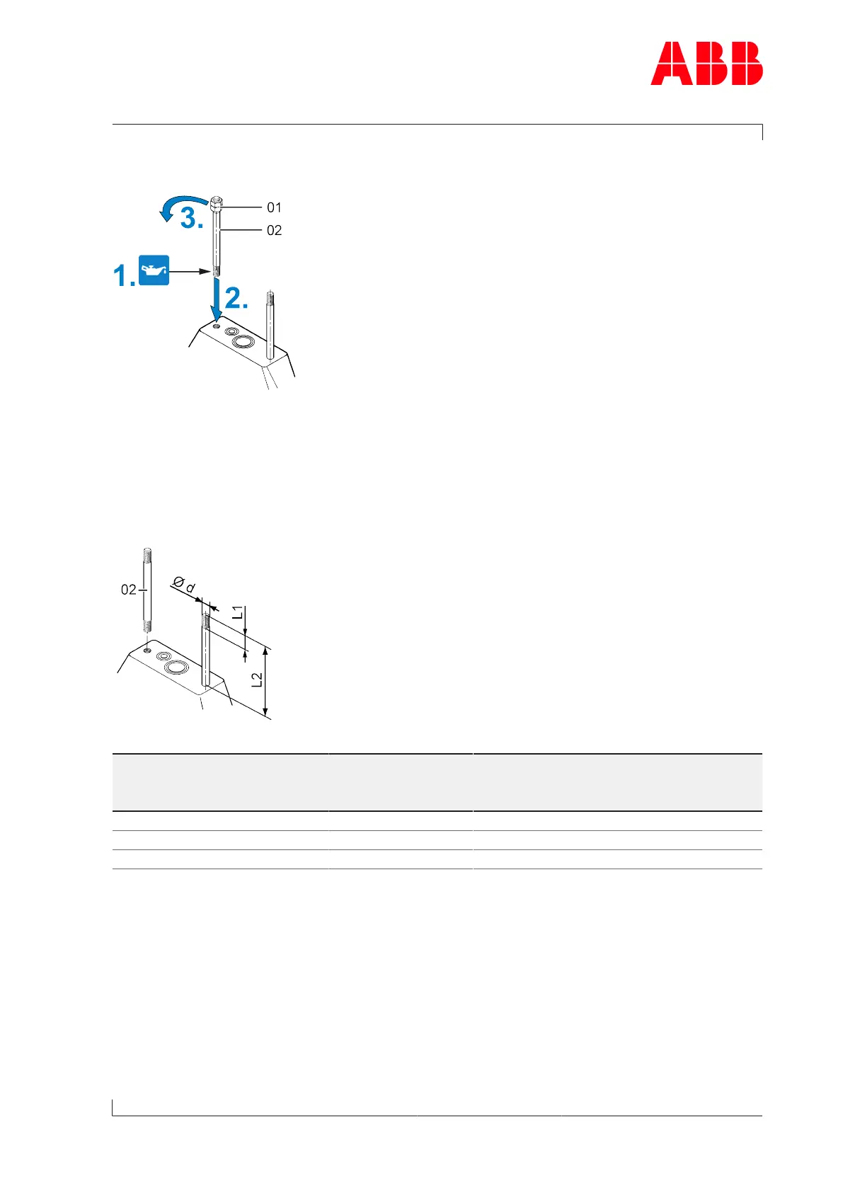 ABB HT596785 - Fig. 7: Inserting Threaded Rods into the Bracket; Fig. 8: Requirements for Threaded Rods; Table 4: Requirements for Threaded Rods