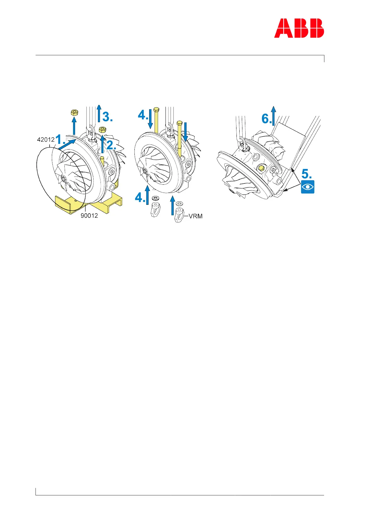 (compressor wheel facing downwards). Use edge guard between turbines and lifting