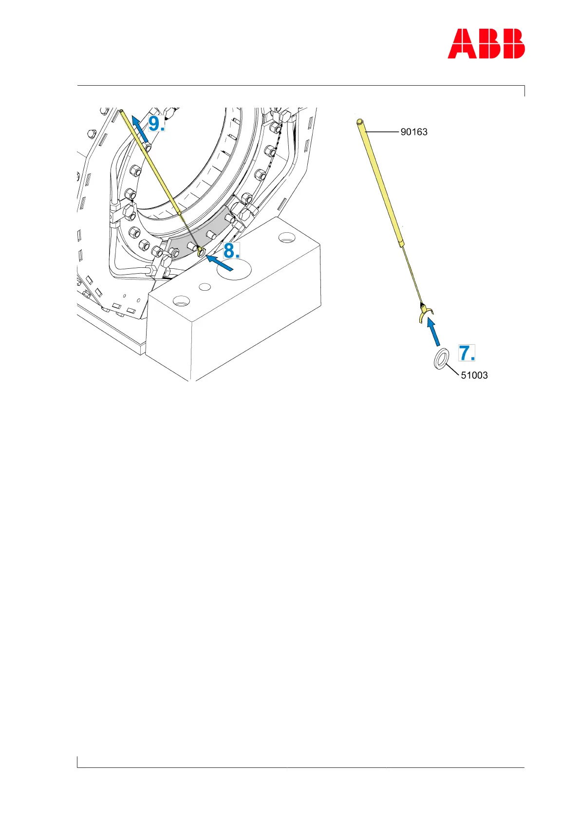 7. Fix the washer (51003) with clamping device (90163) and check to ensure it is properly