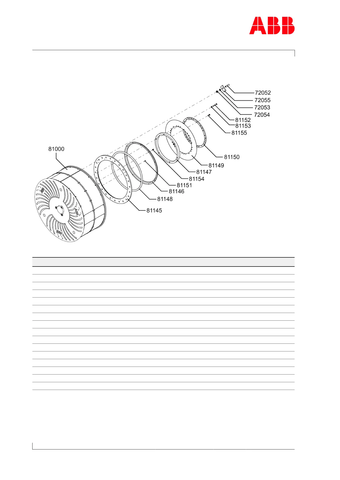 ABB HT600269 - Fig. 128: Overview of Part Numbers; Table 79: Spare Parts List; View of Uncoupled Filter Silencer A155