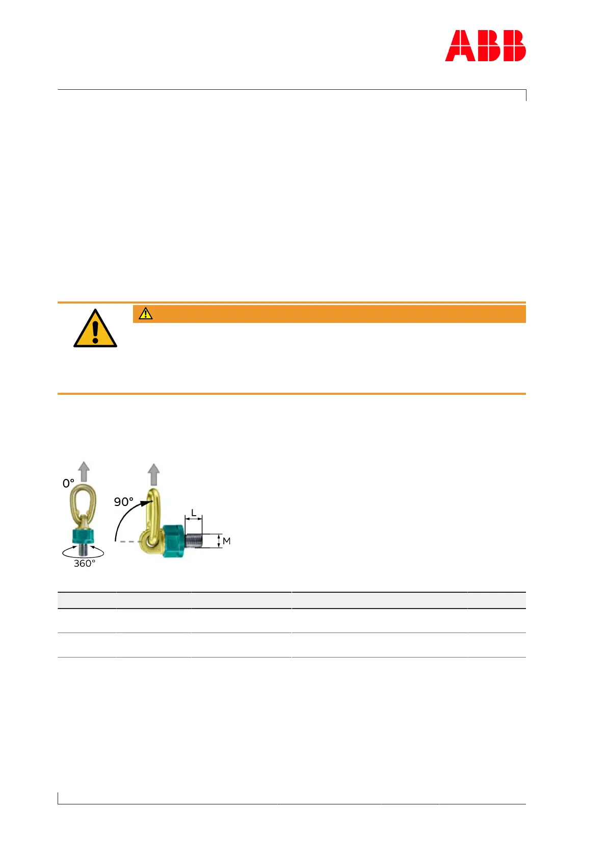 Swivel lifting eyes are required for the safe lifting of loads, which are not supplied by ABB.