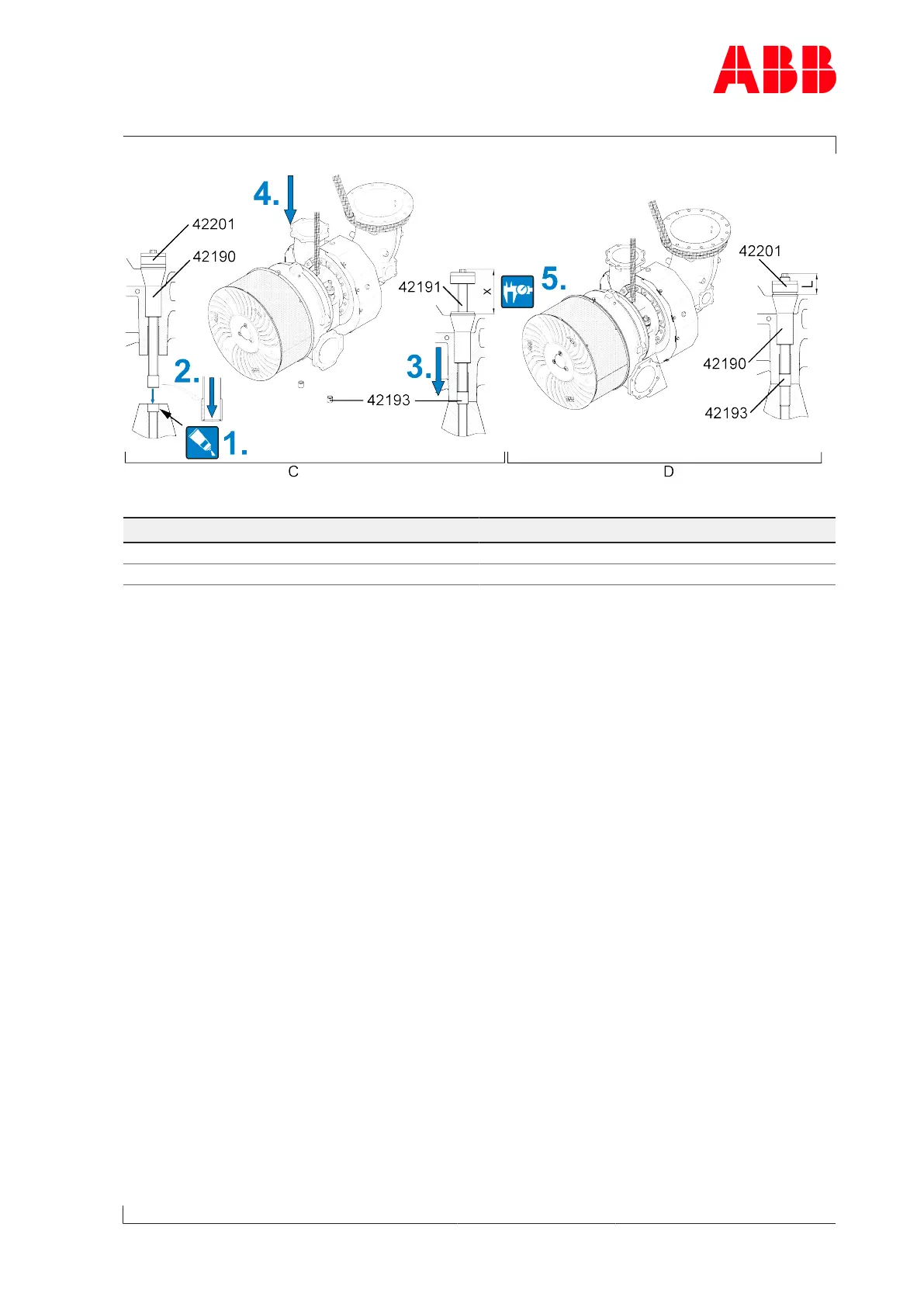 ABB HT604877 - Fig. 18: Fitting the Turbocharger 2; Table 5: Fitting the Turbocharger, Value X, L