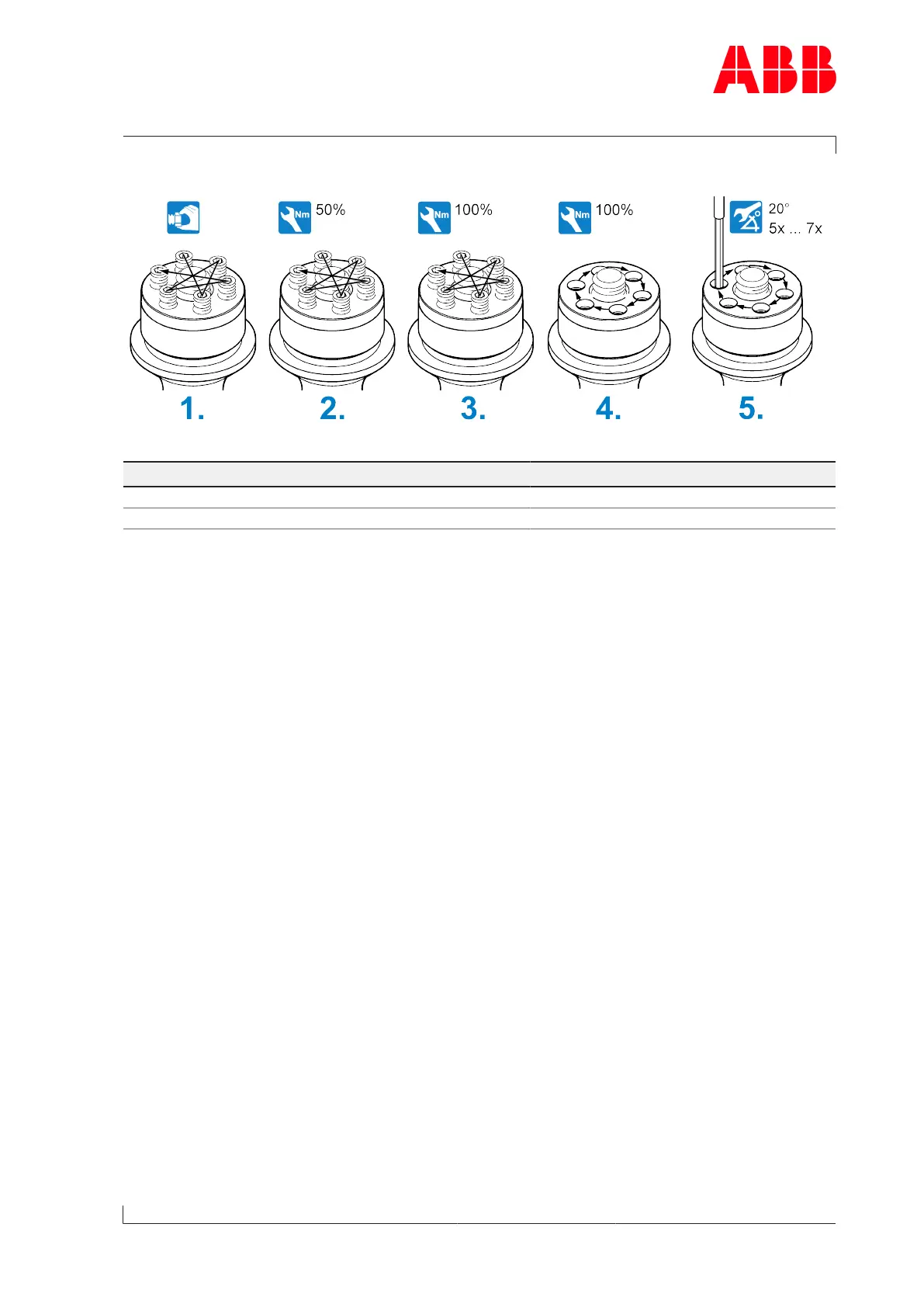 ABB HT610361 - Fig. 22: Tightening Pressure Screws; Table 7: Torque-Controlled Tightening of the Pressure Screws