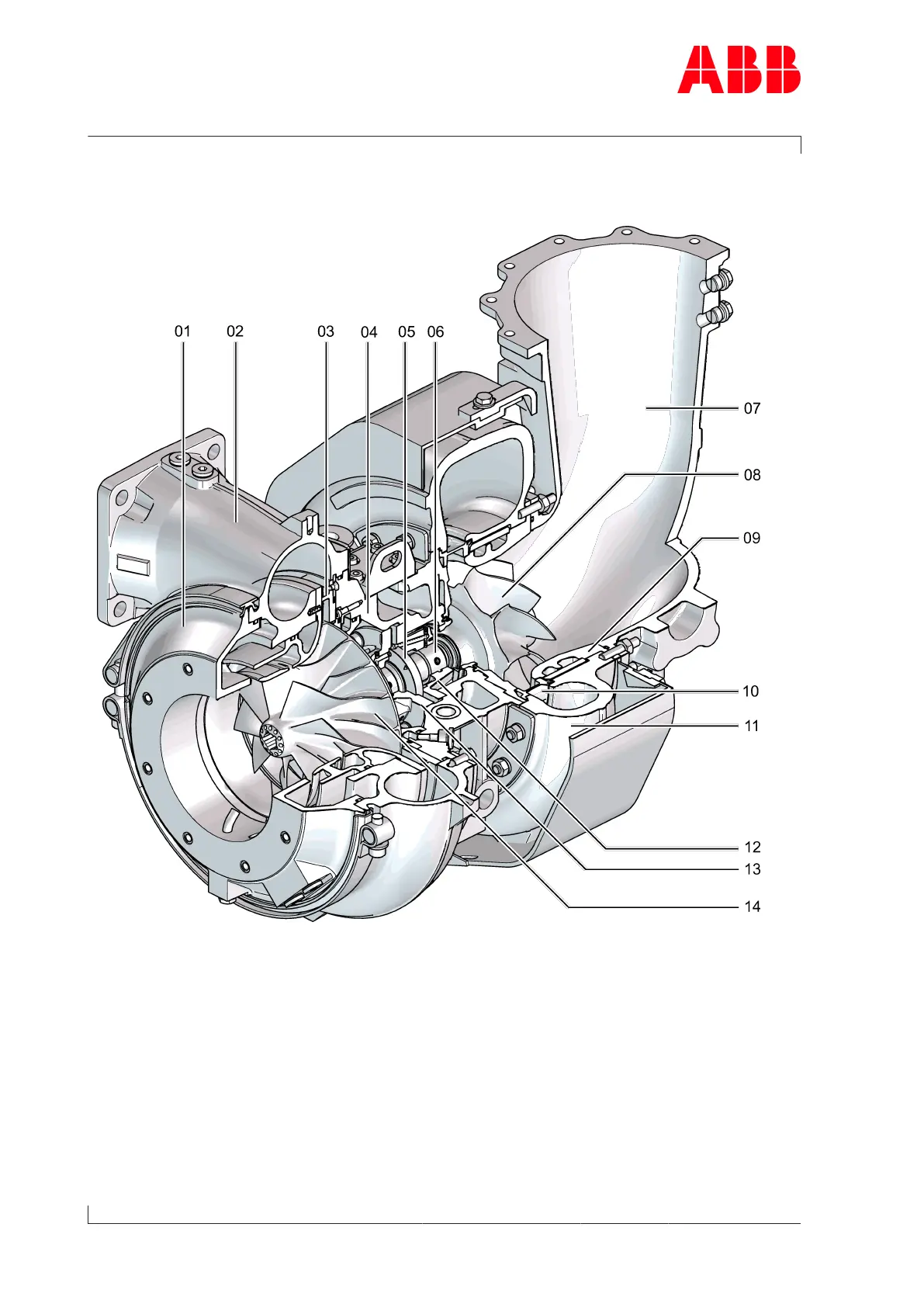 07 Gas outlet casing 14 Compressor wheel