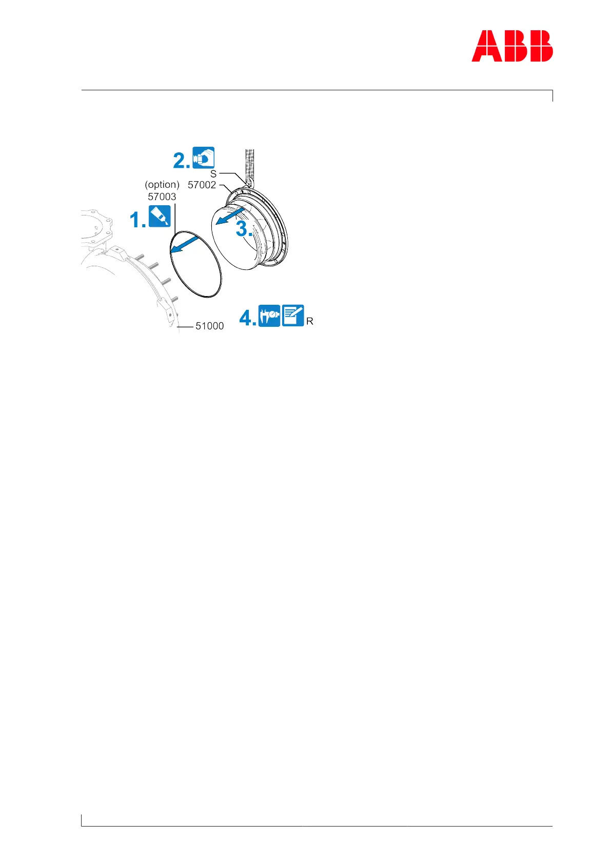 2. Fit swivel lifting eye (S) to the gas outlet flange (57002). Secure lifting gear to the swivel