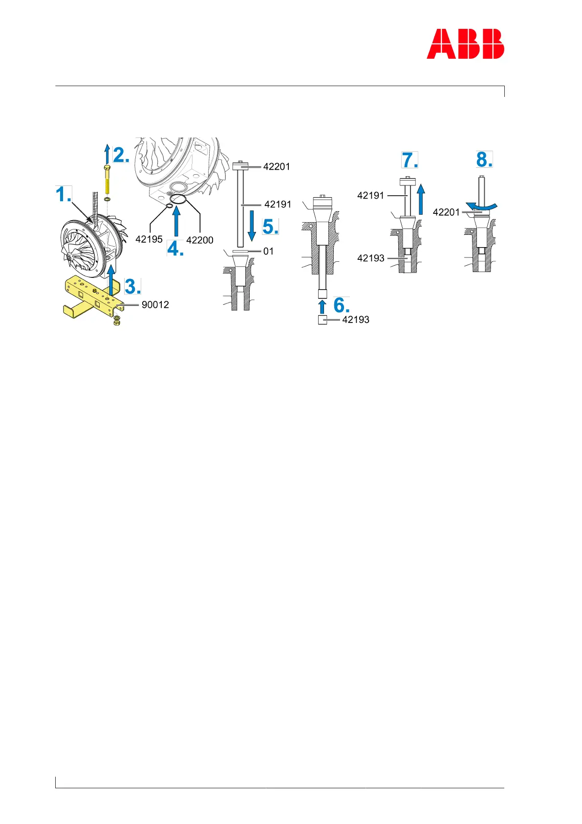 7. Lift the centering bush (42193) using the threaded rod (42191) and hold it firmly.