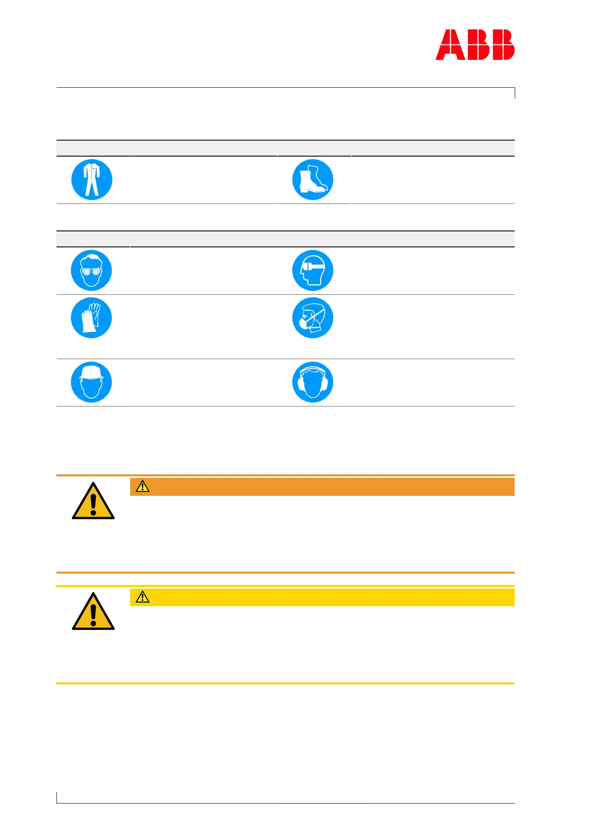 Table2: Personal protective equipment to be worn at all times