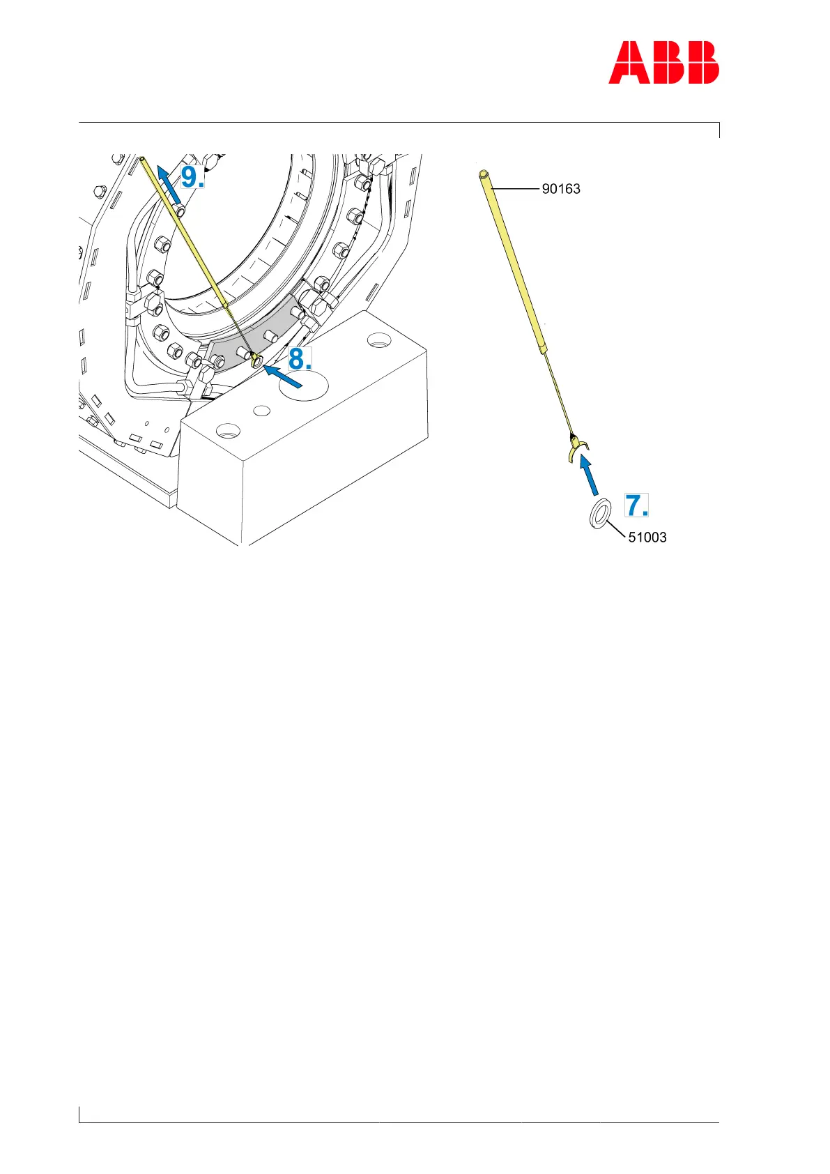 7. Fix the washer (51003) with clamping device (90163) and check to ensure it is properly