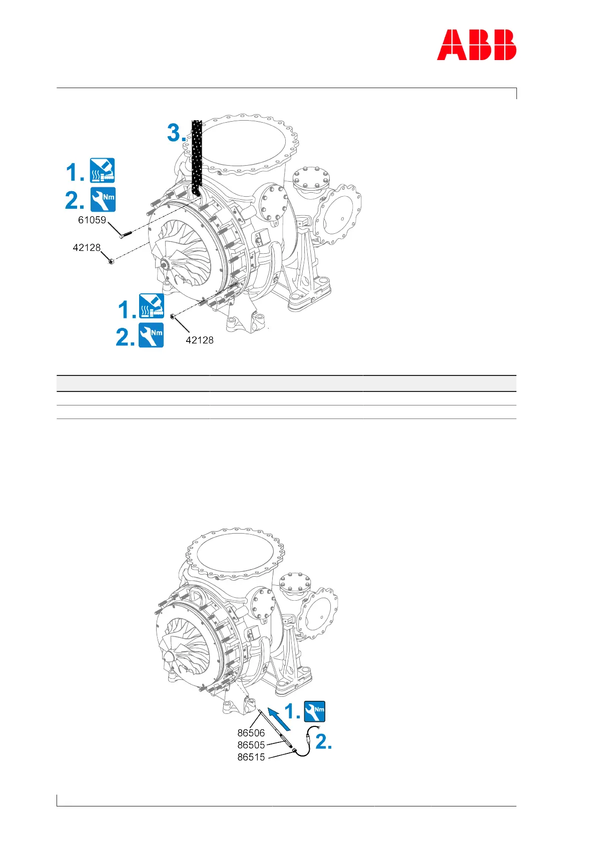 1. Coat thread of screw (61059) and two bolts for the nuts (42128) with high-temperature