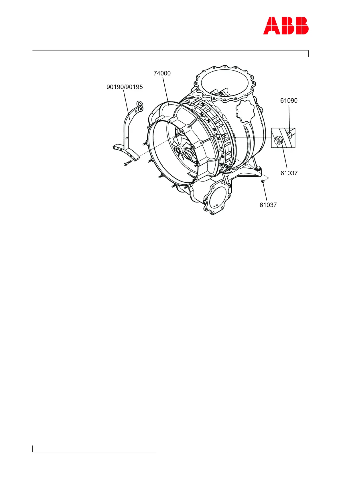 u Fit the compressor casing external part (74000) and secure with nuts