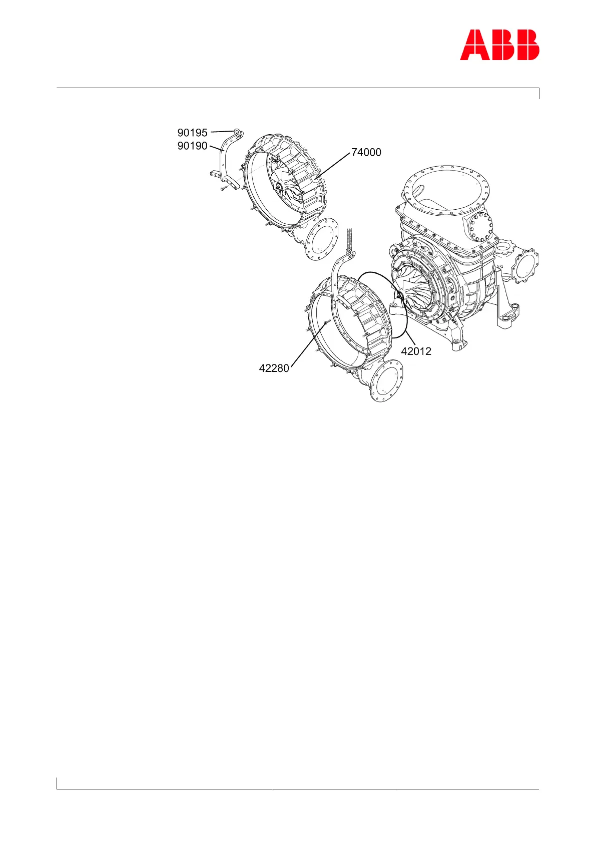 u Fit external part of compressor casing (74000) and fasten using