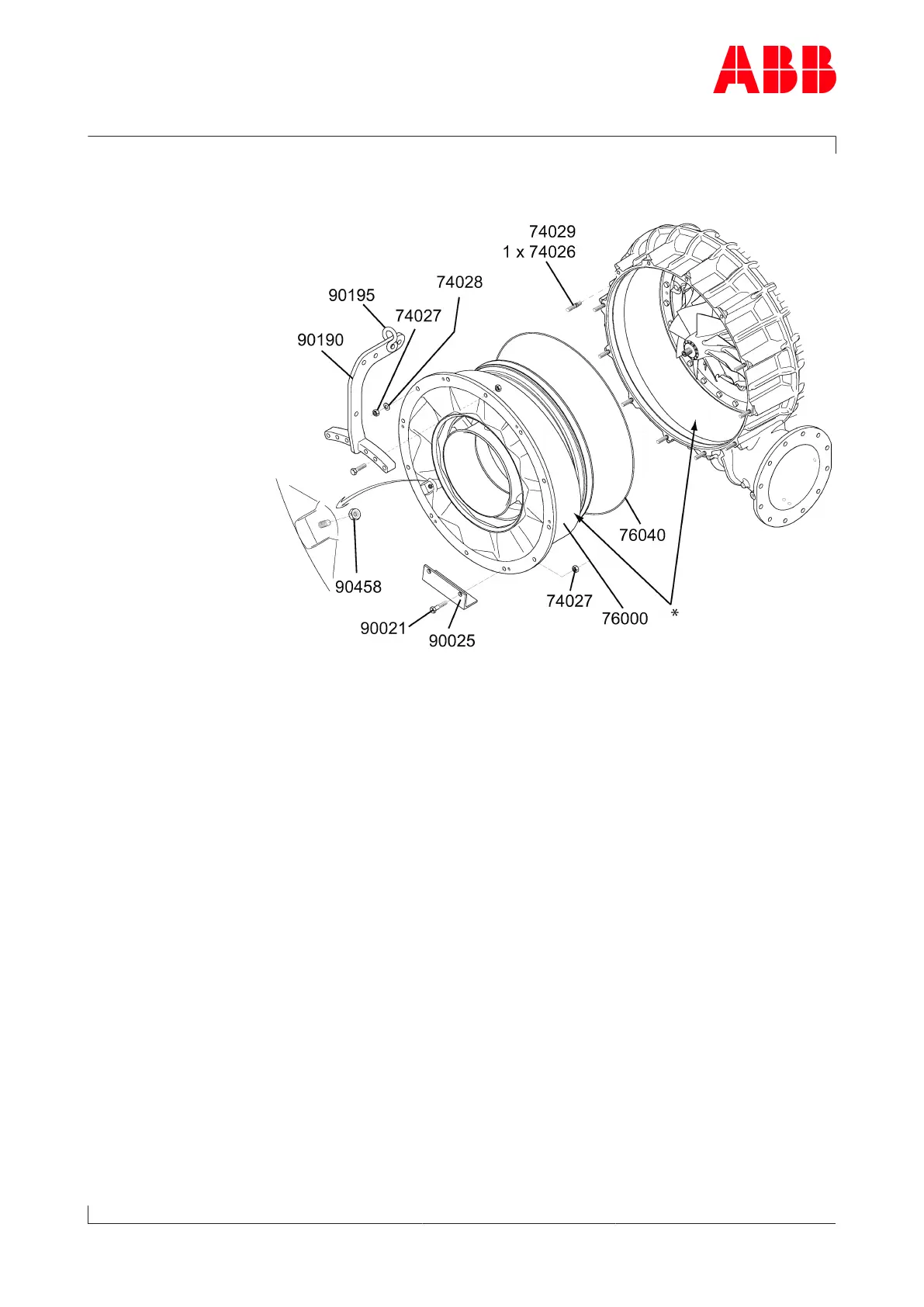 u Remove the support angle (90025), screws (90021) and nuts (74027).