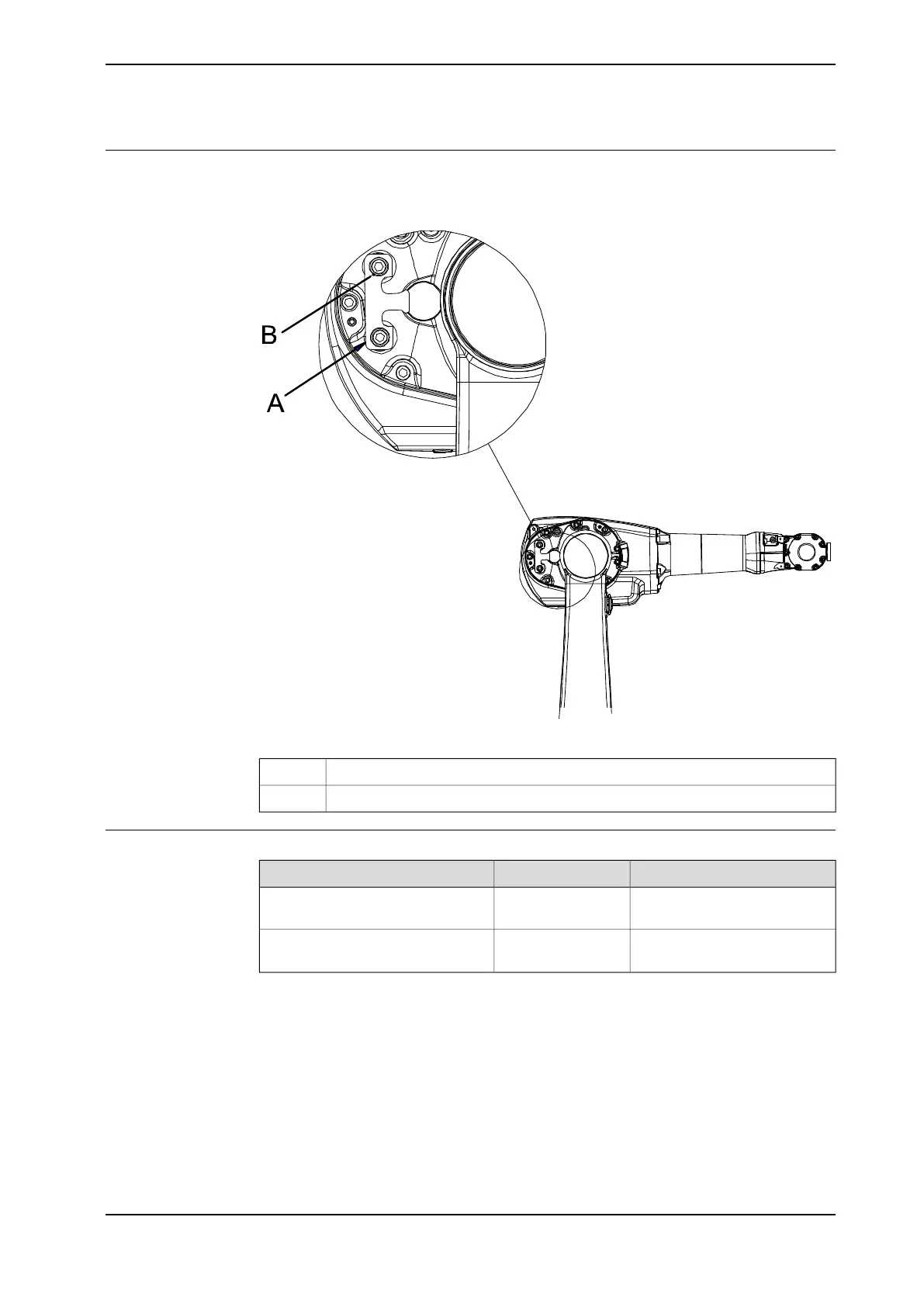 The mechanical stop is installed at the upper arm housing, as shown in the figure