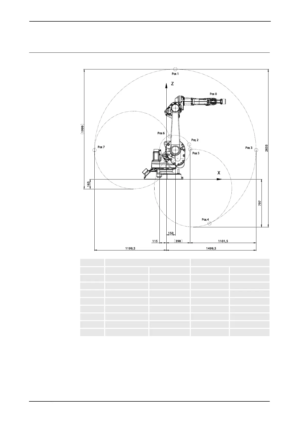 Pos Positions at wrist center (mm) Angle (degrees)