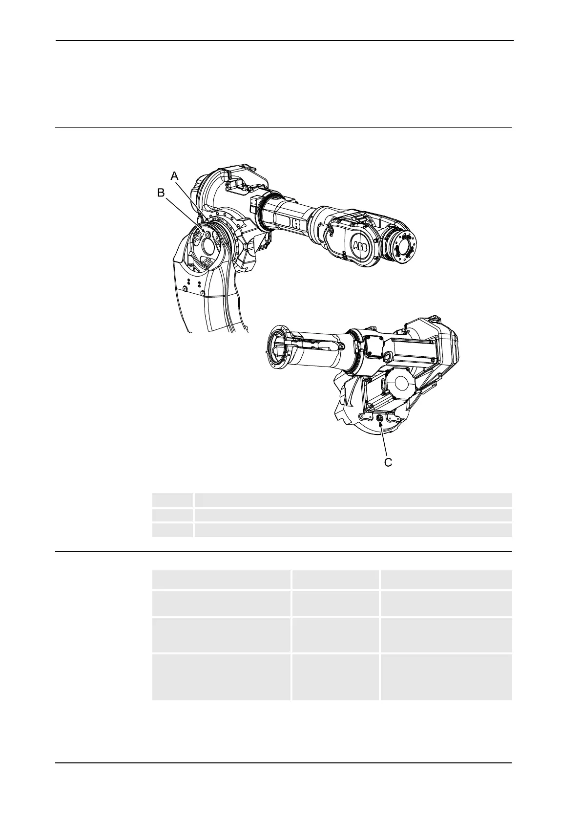 The axis 3 gearbox is located in the upper arm rotational center as shown in the figure below.