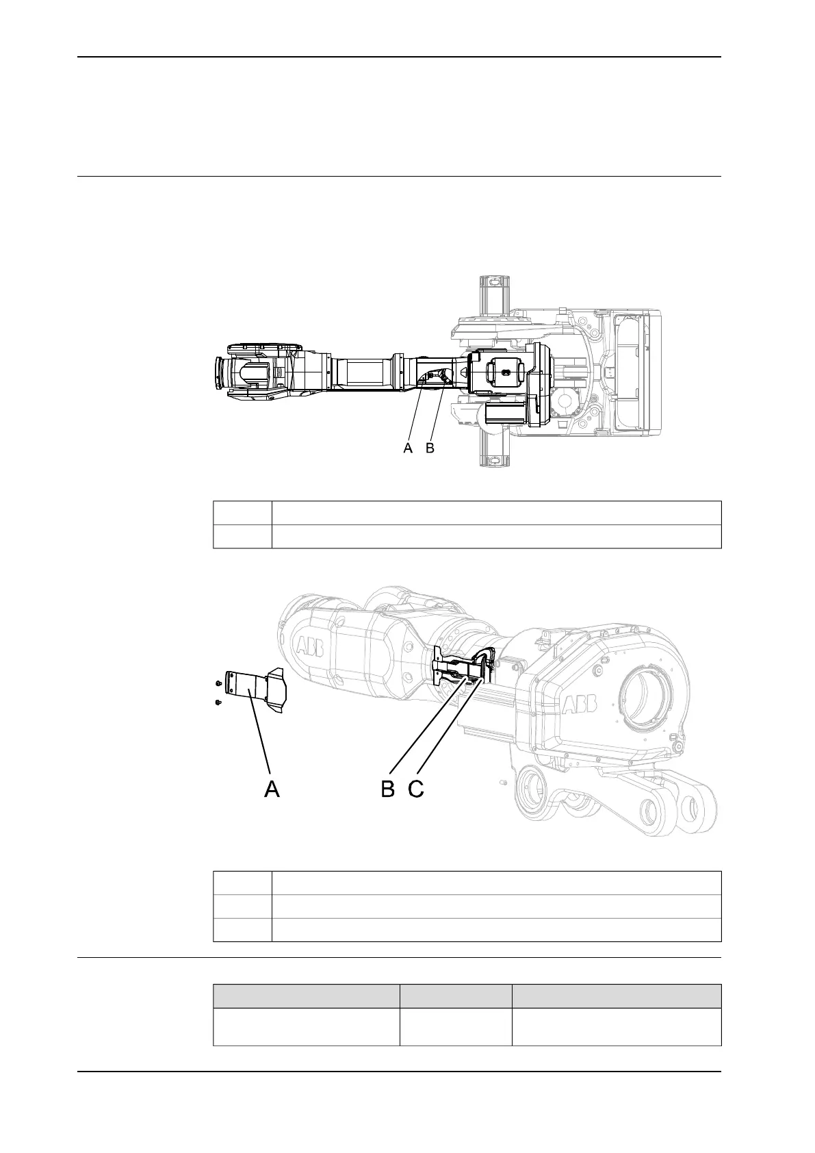 The separate cables for the axis 5 motor are located inside the upper arm tube, as