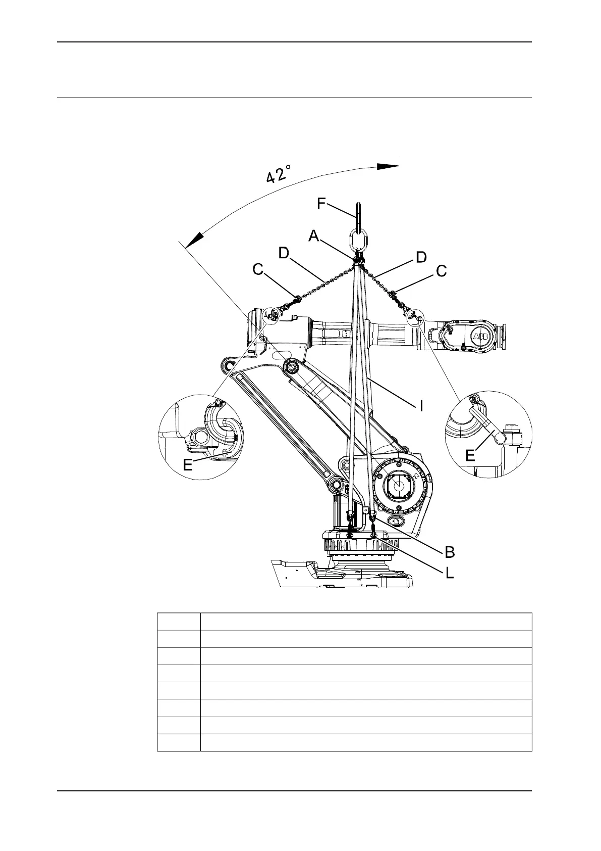 The figure below shows how to lift the complete robot with lifting slings.