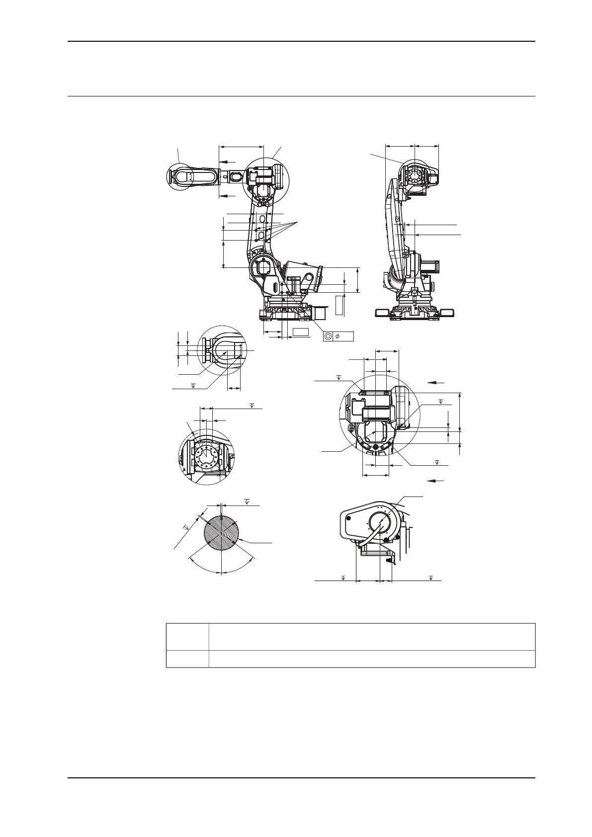 Allowed position for attachment holes, M12 through. Be careful not to touch the